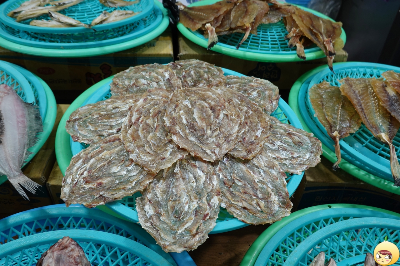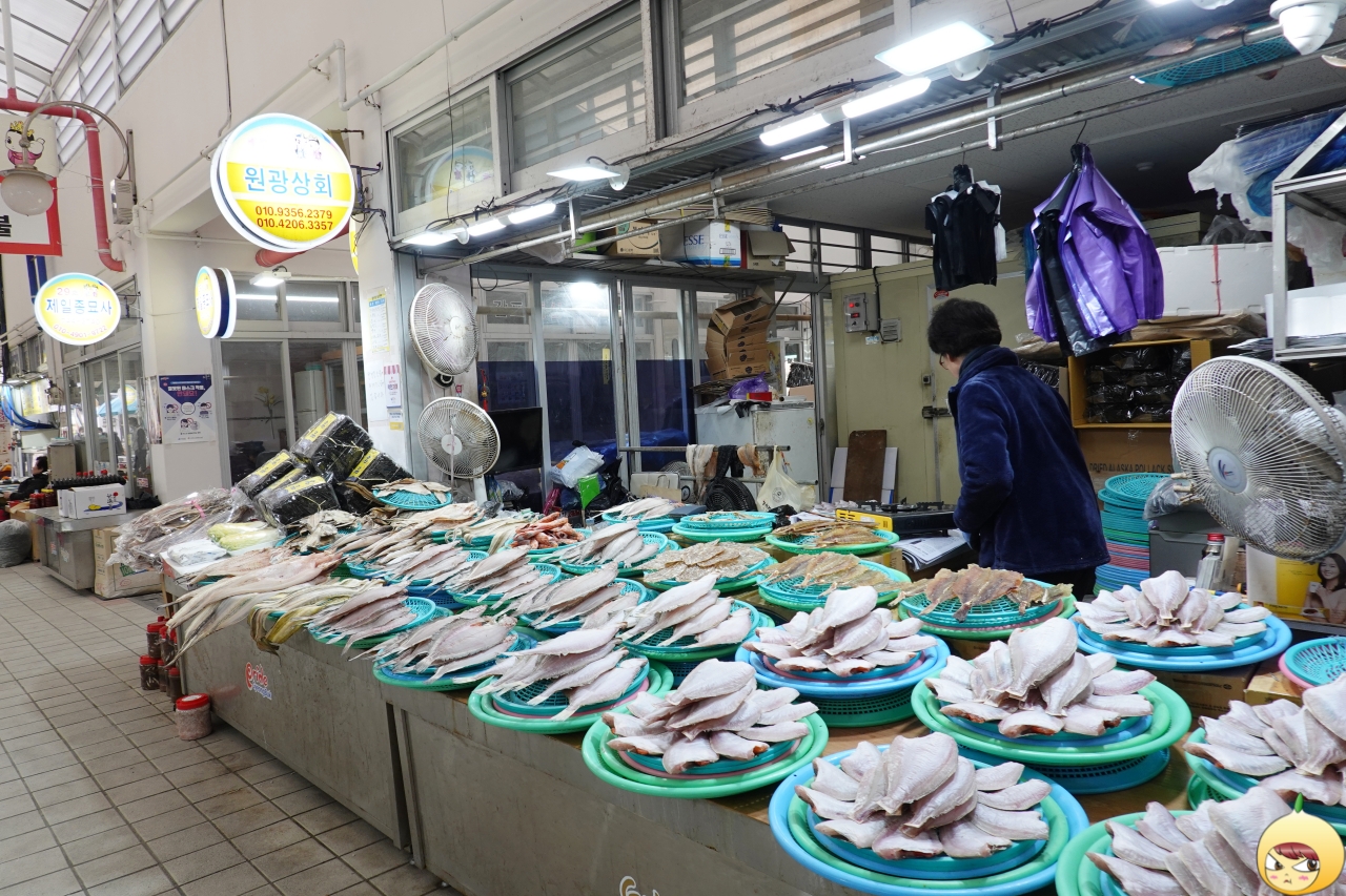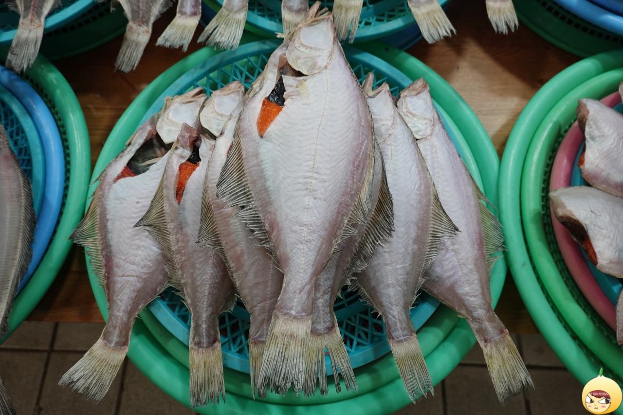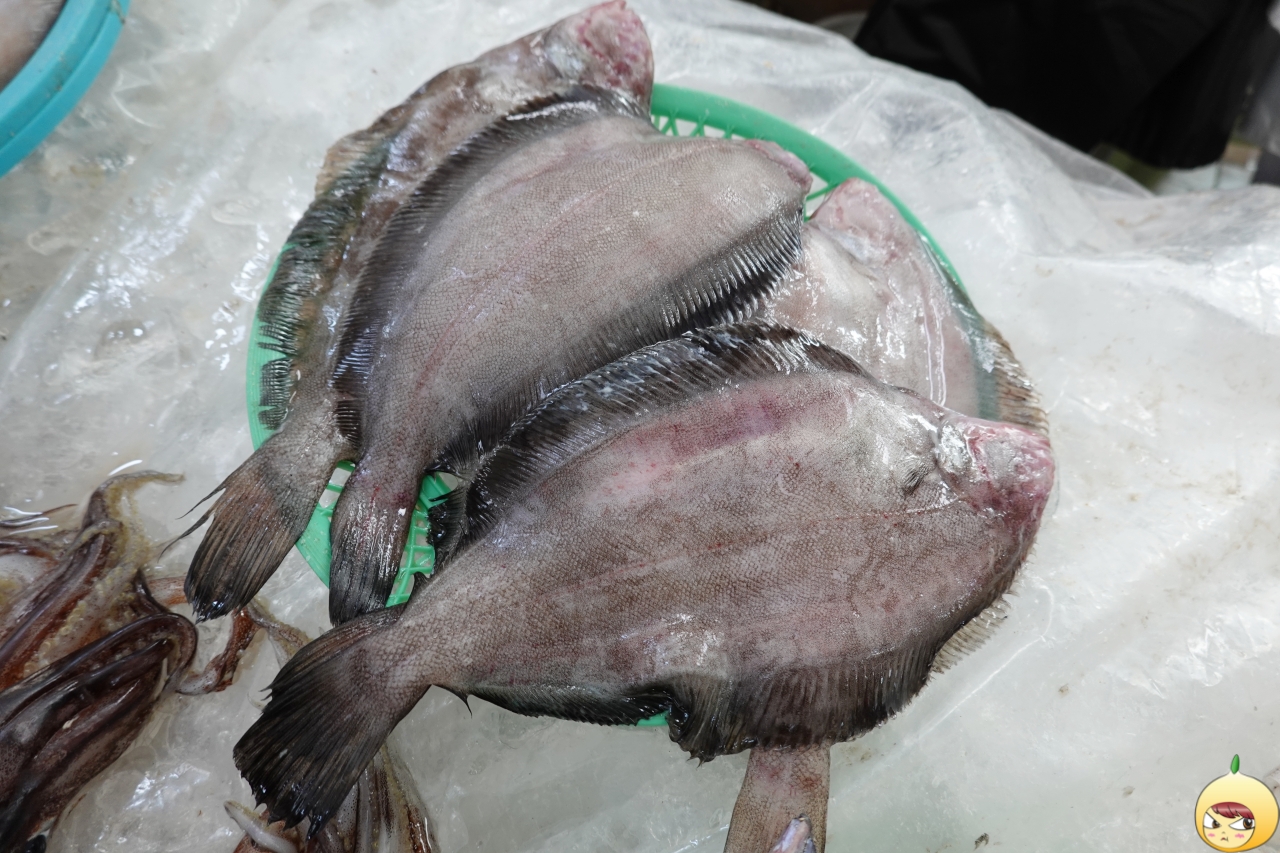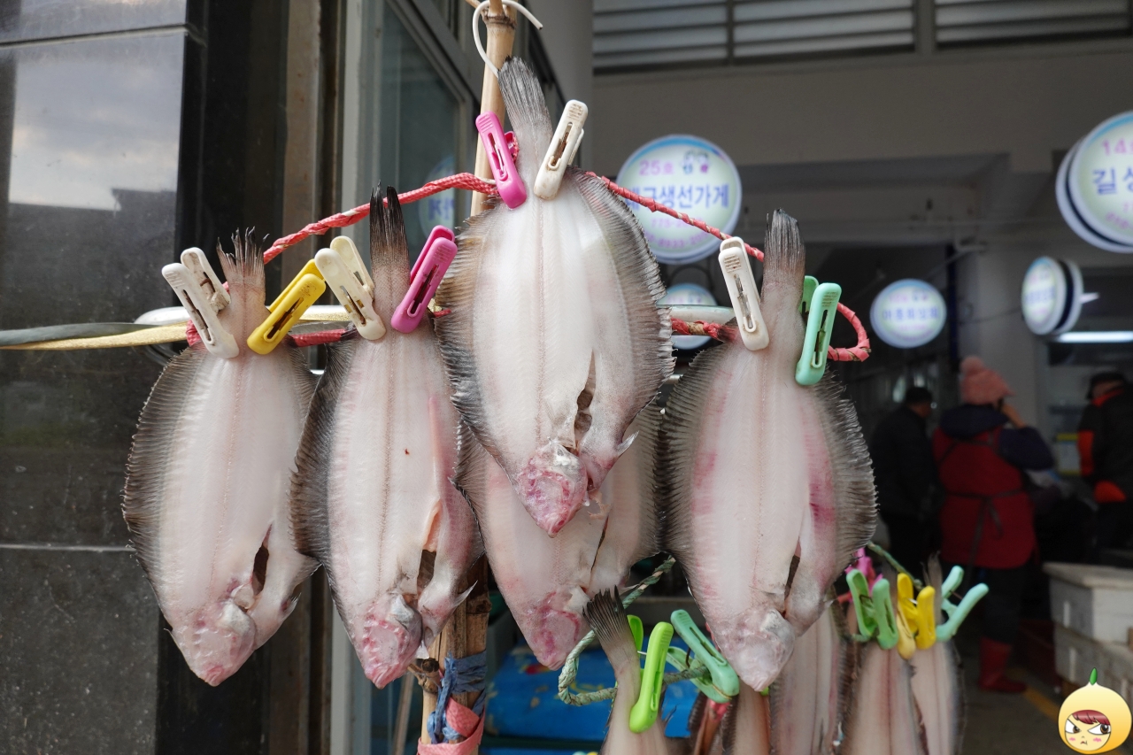 바둑판같은 시장이라서, 중앙이 아니 옆길로 들어오니 생선가게가 보이기 시작했다. 산지까지 왔는데 반건조 기름가자미를 먹어야 하나 했는데, 내눈앞에 생물 기름가자미가 나타났다.