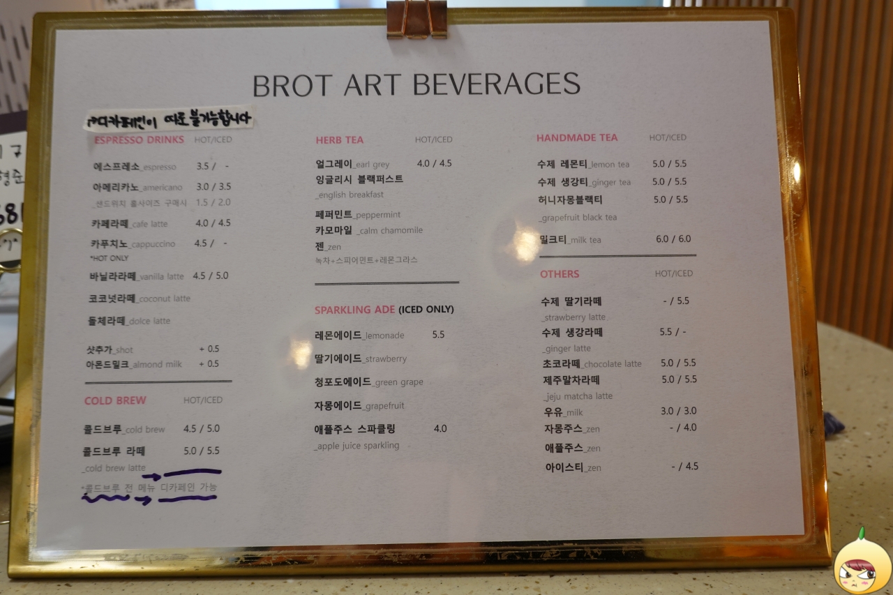 샷 -1로 주문을 했더니, 고소한 맛이 배가 됐다. 믹스커피처럼 달달한 커피만 좋아했는데, 브로트아트 커피도 이제 좋아한다. 어떤 원두를 사용하는지 묻고 싶지만, 알아도 직접 만들어 먹을 자신이 없기에 브로트아트를 더 자주 올 생각이다.