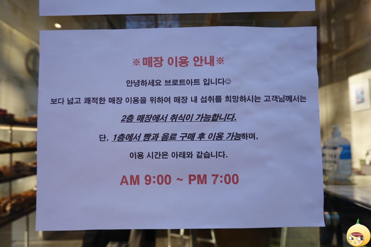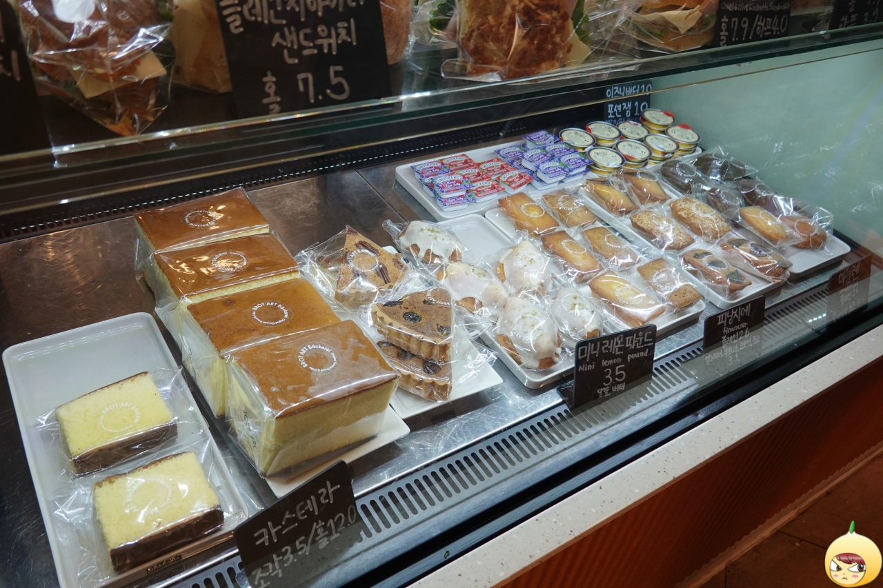 1층에서 빵을 고르고 음료를 주문하면, 직원이 직접 2층 카페로 갖다준다. 빵집에서 바로 2층으로 올라갈 수 없고, 밖으로 나와서 편의점 옆에 있는 건물 입구로 들어가 2층으로 올라가면 된다.