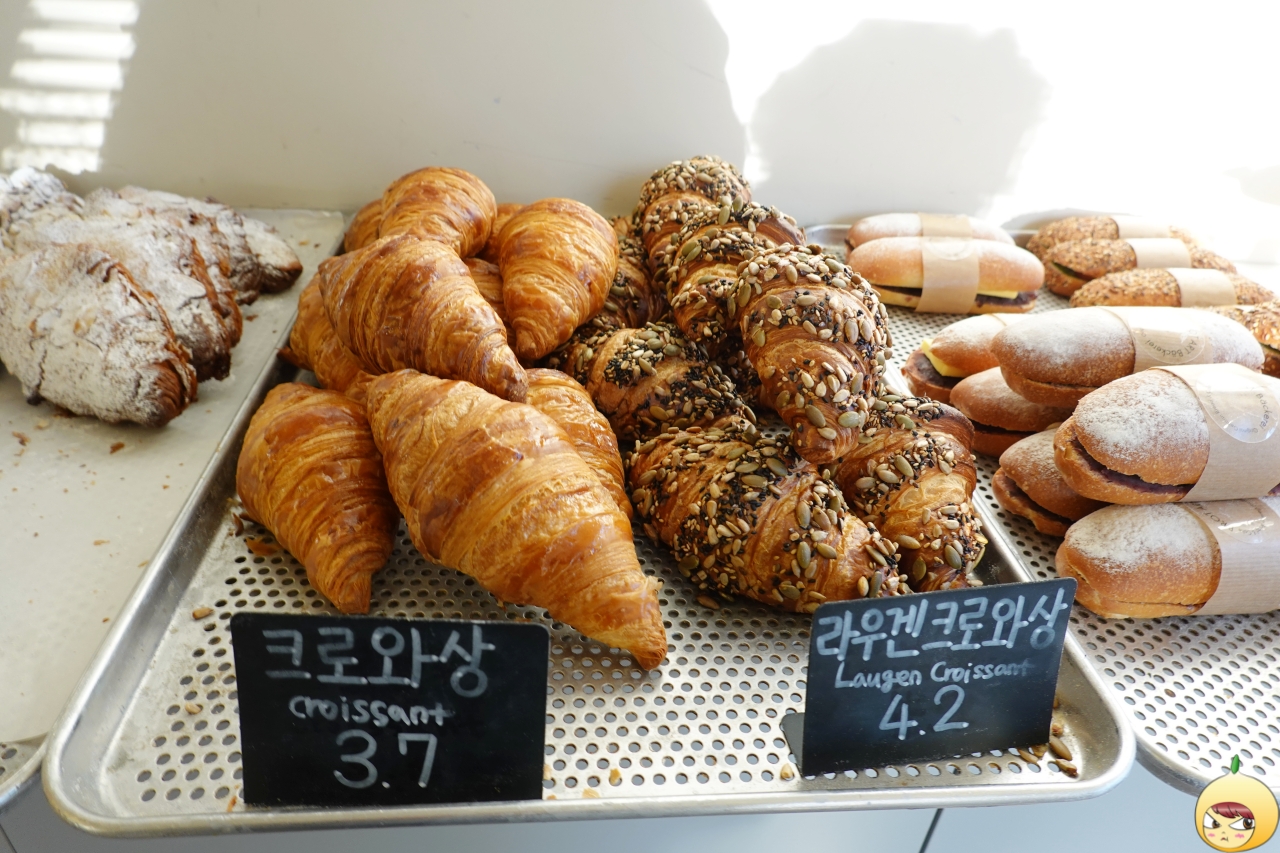 사진 왼쪽에 작은 원탁테이블이 3개 정도 있었는데, 모두 다 사라지고 빵으로 채워졌다. 빵집과 카페가 한 공간에 있어 답답했는데, 이제는 훨씬 더 넓어진 공간에서 빵을 고를 수 있게 됐다. 공간이 달라져서 그런가, 빵 종류가 더 많아진 듯 하다. 한달만에 방문인데 겁나 새롭다.