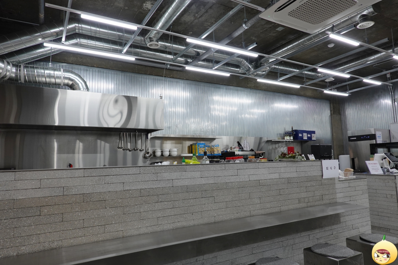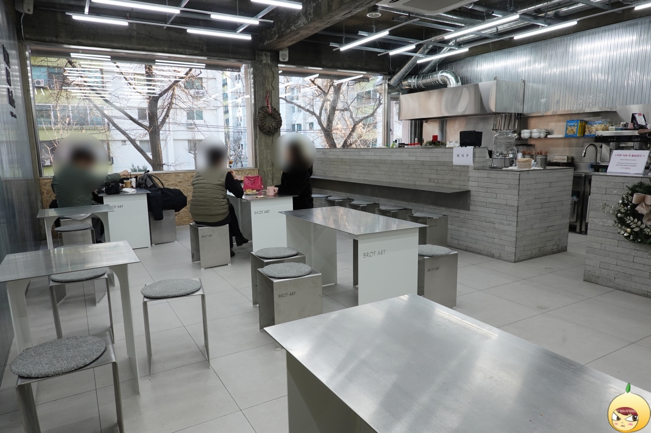 카페 공간이라고 하기에 주방 규모가 엄청나다. 빵을 만드는 공간은 따로 있을 텐데, 혹시 브런치나 와인바 같은 공간으로 확장하려는 것은 아닐까? 의자에 등받이가 없어 불편하다는 점만 빼고, 예전과 달리 넓어진 카페 공간은 맘에 든다.