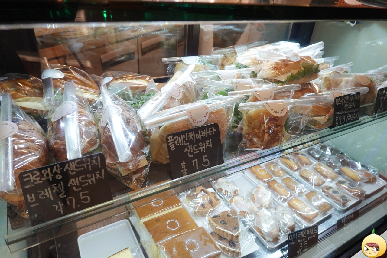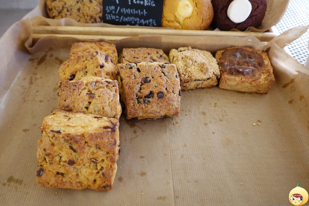 브로첸(2,500원)이 뭔가 했는데 미니 바게트다. 공룡알 모양처럼 생겨서 골랐는데, 역시 아무것도 들어있지 않는 바게트는 맛이 심심하다. 바삭한 부스러기만 조금 먹다가, 다음날 에이스 과자처럼 달달한 믹스커피에 푹 담궈서 먹었다.