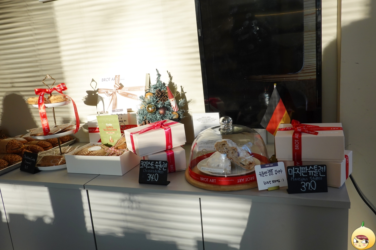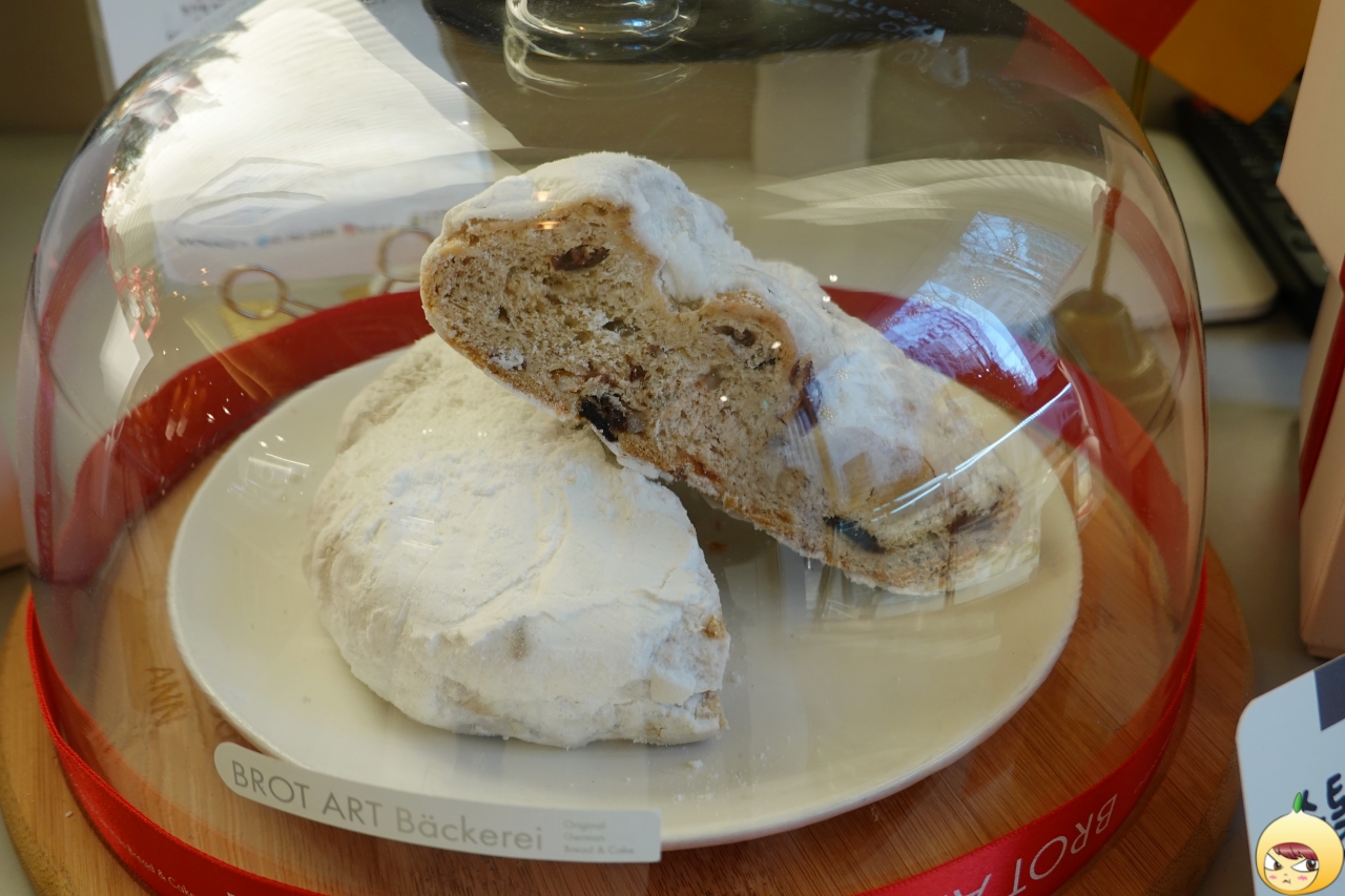 슈톨렌은 독일 전통 케이크로 럼에 절인 건과일을 넣은 반죽에 고소한 버터와 눈처럼 하얀 슈가파우더를 뿌려 완성한다. 숙성 과정을 거칠수록 고유의 풍미가 배가 되기에, 오래 보관하면서 조금씩 먹어야 깊은 맛을 더 즐길 수 있다고 안내문에 나와 있다.