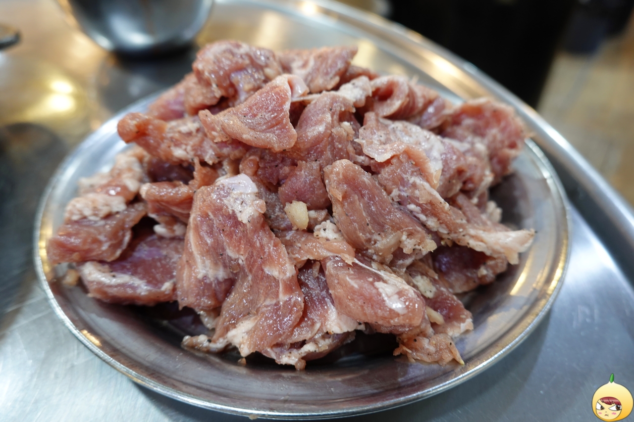 갈매기살은 돼지고기의 횡격막과 간 사이에 있는 살이다. 위치가 그러하다 보니 누린내와 같은 육향이 진하게 난다. 그때문인지 갸볍게 양념이 되어 있다. 갈비처럼 간장양념은 아니고, 다진마늘과 후추 정도랄까? 다진마늘은 눈으로 보였고, 후추는 먹을때 느껴졌다.