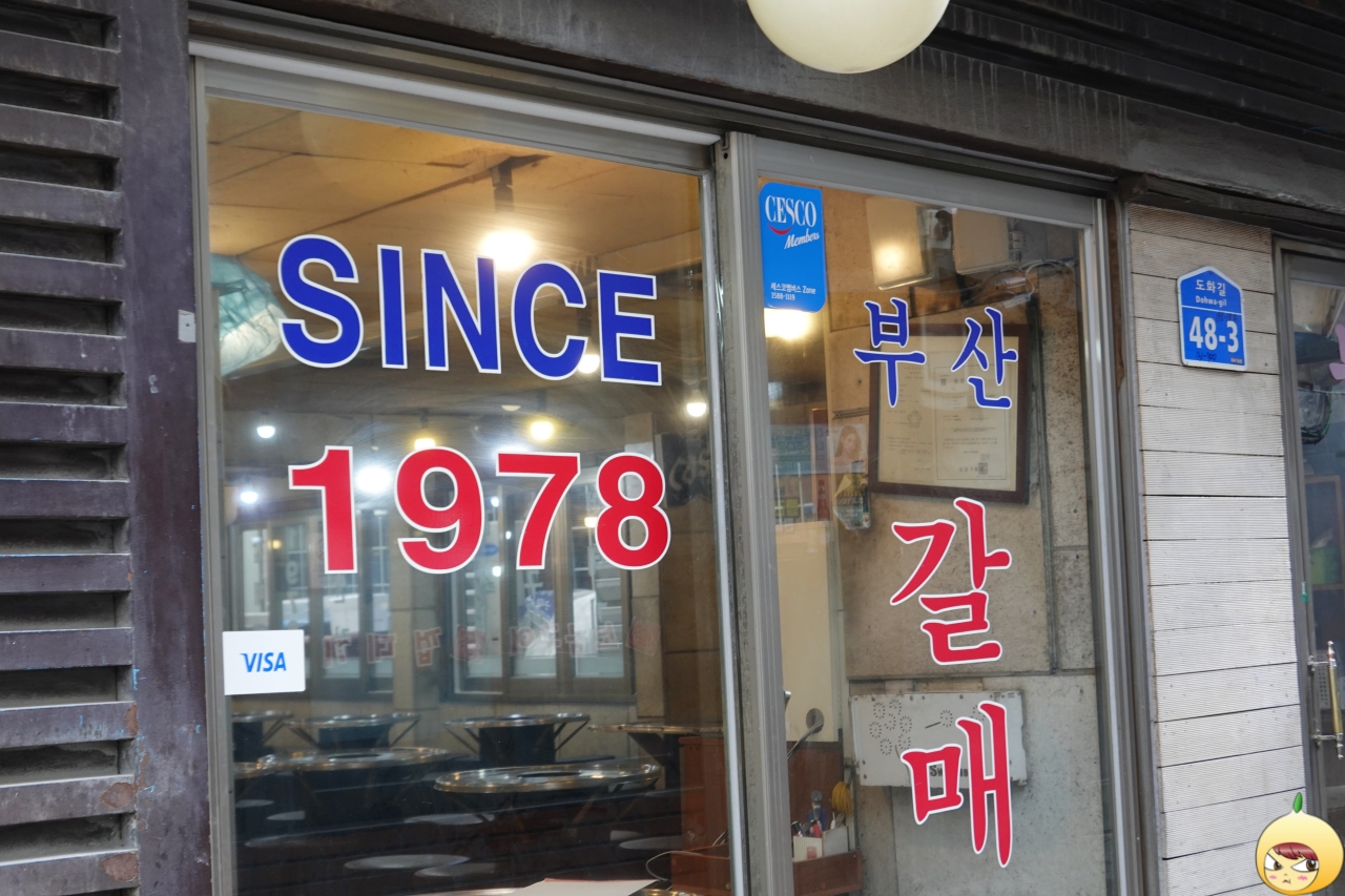 마포 갈매기 골목에서 부산갈매기를 택한 건, SINCE 1978 때문이다. 먹자골목에서 어디로 가야할지 모를 때는, 식당의 역사를 본다. 오래 됐다는 건, 그만큼 찾는 이도 많도 맛도 있다는 증거니깐. 다른 집도 똑같은지 모르겠지만, 부산갈매기는 브레이크타임이 없다. 혼밥은 바쁜 점심시간을 피해야 하듯, 혼고기는 사람이 많이 오는 저녁시간을 피해야 한다.