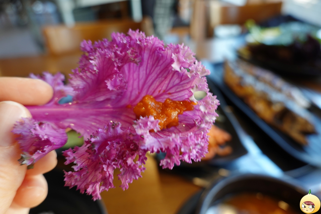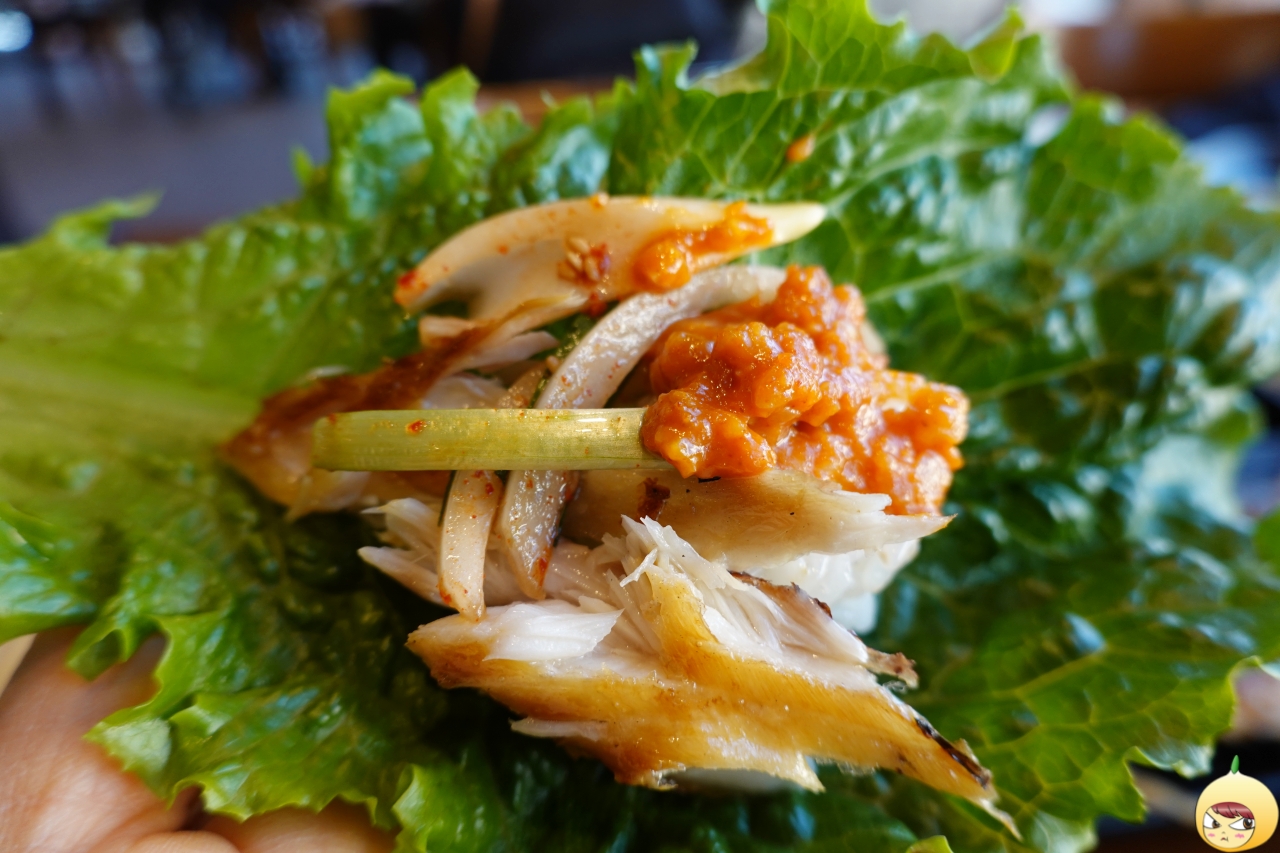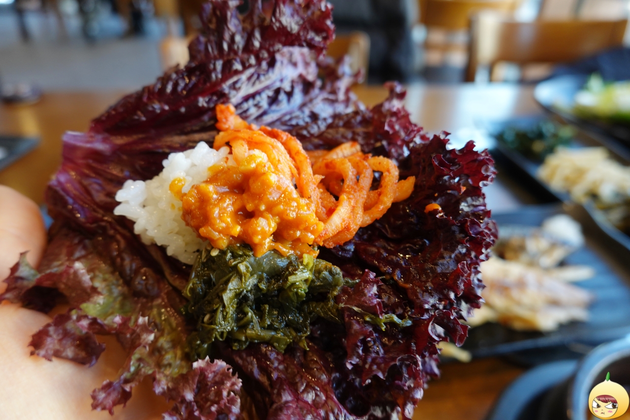 갓지은 솥밥 그리고 황토가마에서 구운 자반고등어 한 점은 맛이 없을 수 없는 조합이다. 살은 물론 바삭한 껍질도 놓칠 수 없다. 쌈채소가 거의 무한으로 제공되기에 고기 대신 고등어를 넣어서 쌈을 만들었는데, 굳이 이렇게 먹을 필요가 있을까 싶다. 역시 쌈은 고기가 진리다.