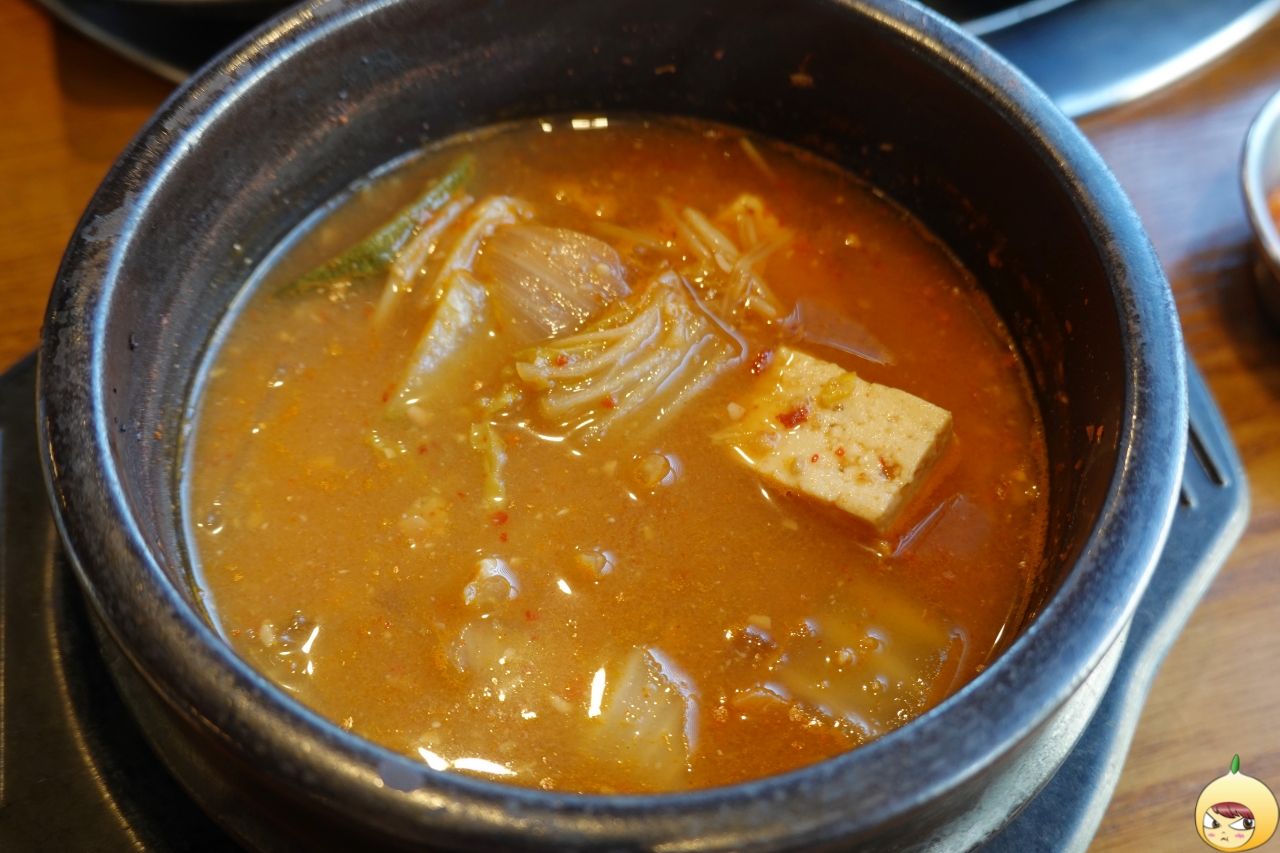 쌈채소는 직접 가져왔는데, 알배추와 상추가 별로 없어서 처음본 듯한 녀석(?)들을 데리고 왔다. 제육볶음이 아니라서 쌈채소는 양 조절을 했다. 된장국보다는 그 속에 들어있는 두부에 더 집중을 했다. 왜냐하면 직접 만든 두부일테니깐. 슴슴은 아니고 밥이랑 같이 먹어야 짠맛이 덜하다.