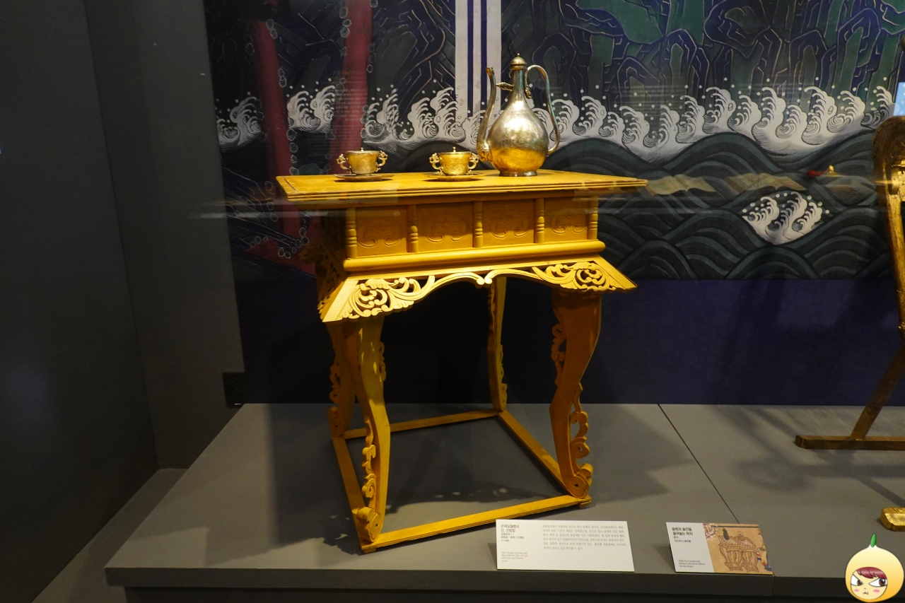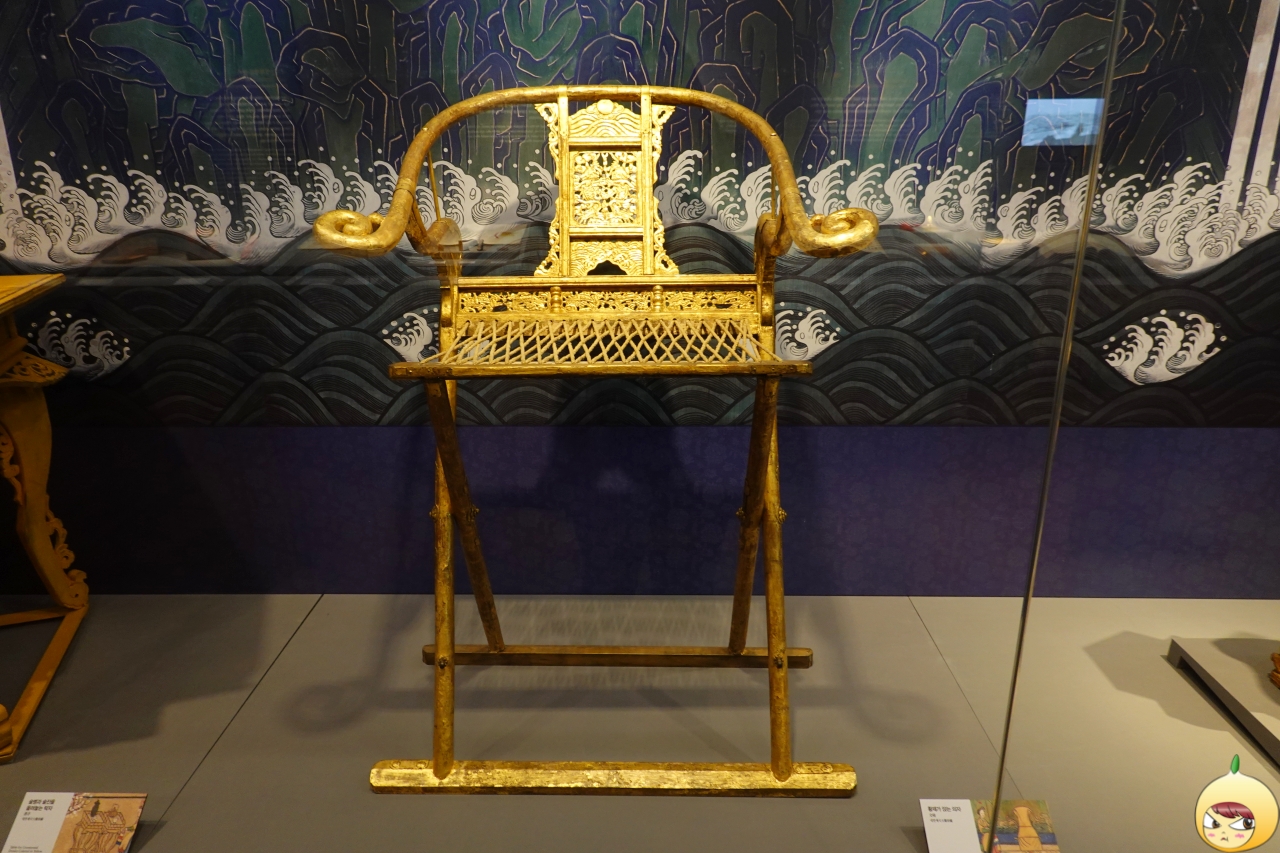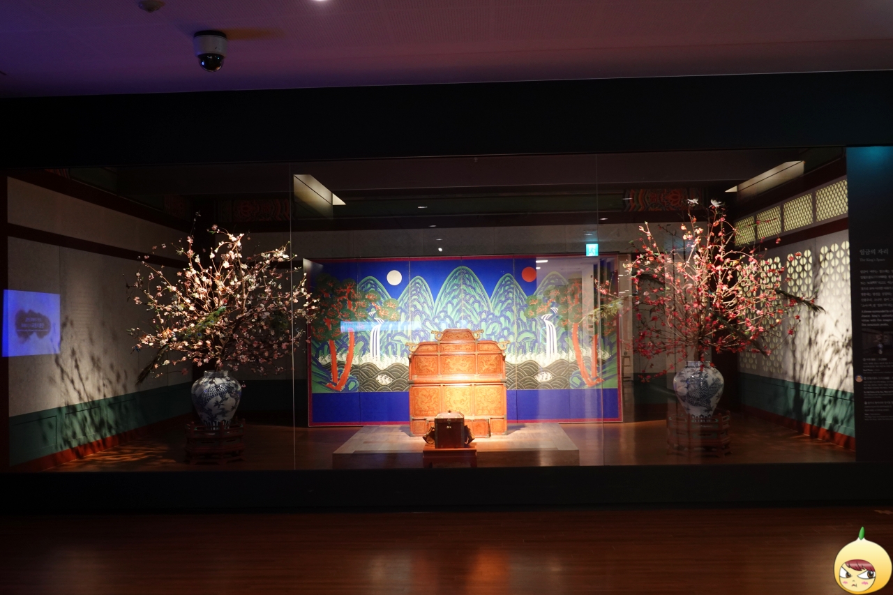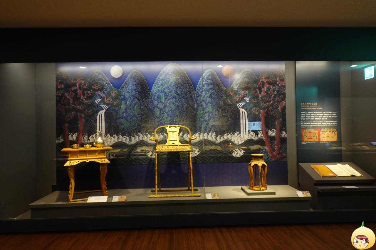 바로 과학문화 전시실로 가도 되지만, 여기까지 왔는데 첫 전시실을 들려야 하지 않을까 싶다. 조선의 국왕 전시실(2층)에서 가장 먼저 만나는 임금의 자리는 중앙에 있는 어좌를 기준으로 뒤는 일월오봉도가 양쪽에는 용무늬 항아리와 장식용 꽃이다.