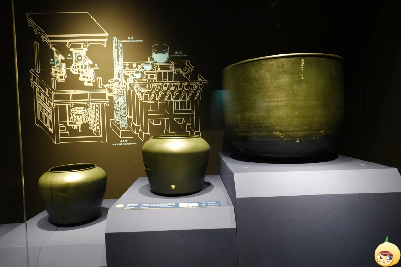 물을 흘려보내는 항아리는 파수호, 물을 받는 항아리는 수수호라고 한다. 자격루 작동 원리를 영상으로 볼 수 있는데, 보면 볼수록 놀랍다는 거 안 비밀이다. 사진 속 항아리는 파수호이며, 위 사진에서 기둥같은 항아리가 수수호이다.