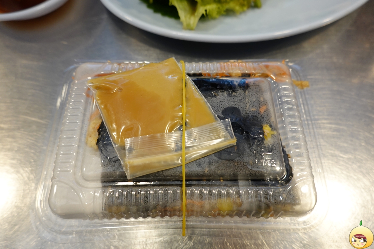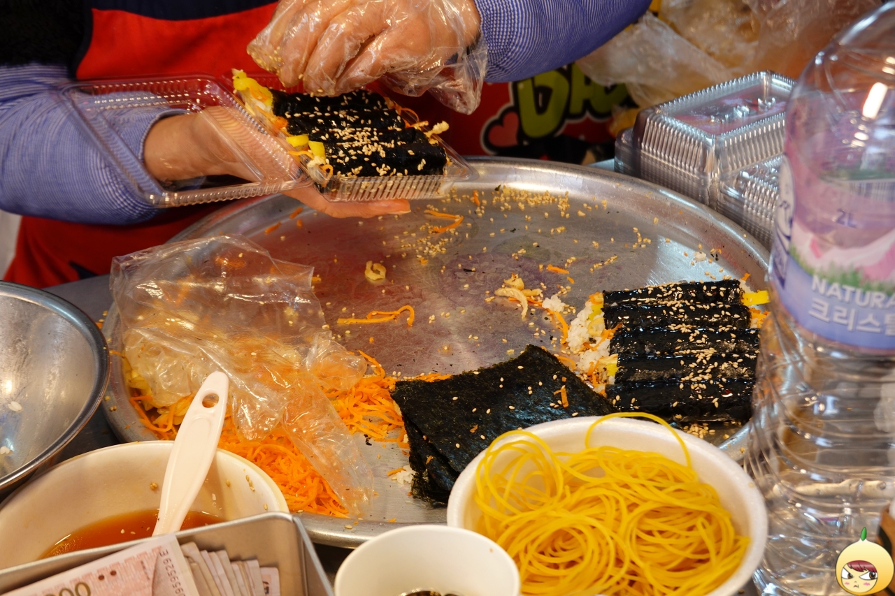 총 6개 들어 있으며, 사람이 많아서 포장을 한 후 다음에 나올 전라도횟집에서 먹었다. 마약김밥이라는 엄청난 이름을 갖고 있지만, 김밥만 먹으면 이게 무슨 마약김밥이야 할 것이다. 하지만 노란물(겨자)을 만나면 중독성이 무지무지 강한 마약김밥이 된다. 꼬마김밥에 겨자소스만 더했을 뿐인데, 이름때문인지 광장시장에 오면 무조건 찾는다.