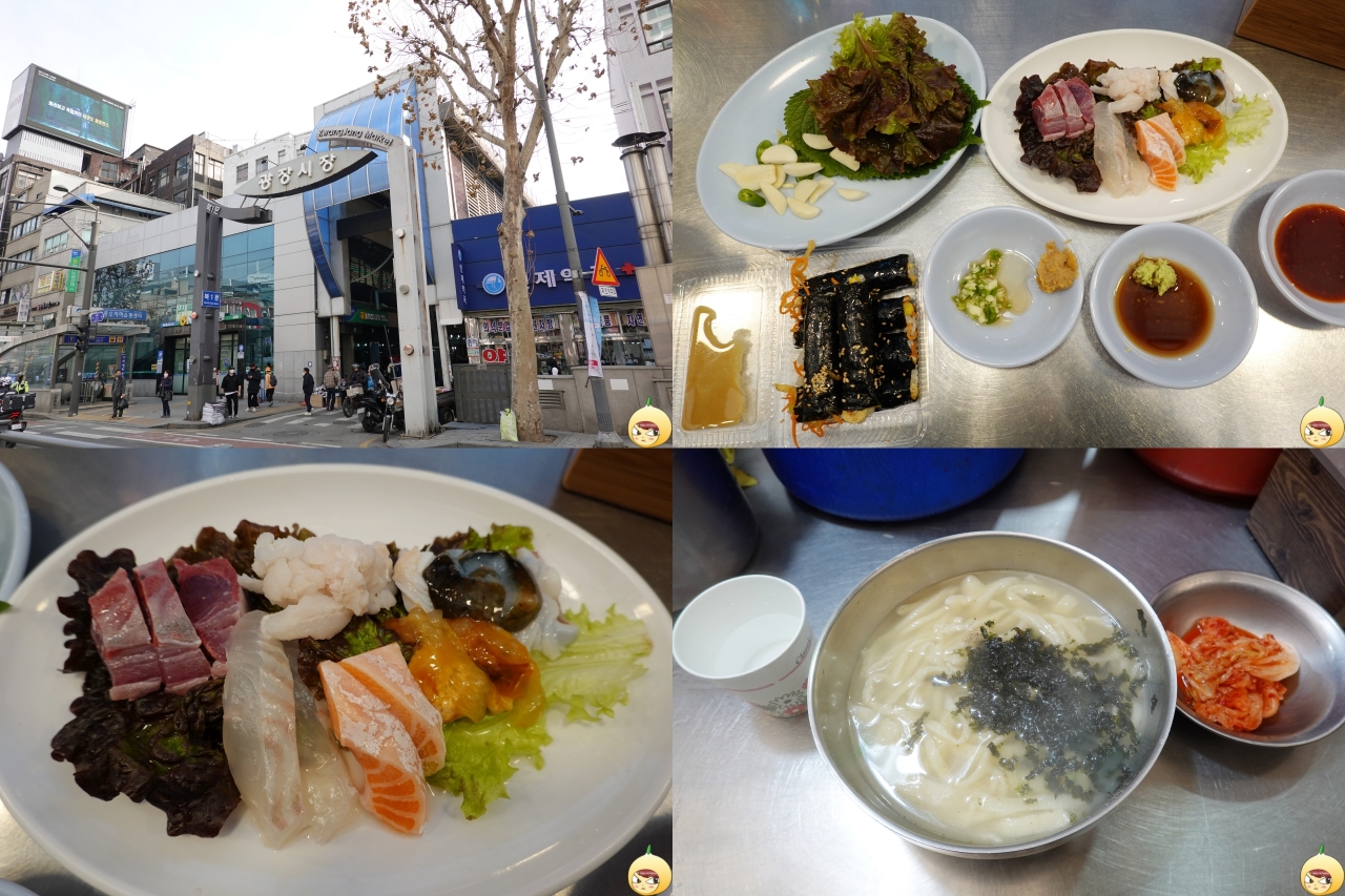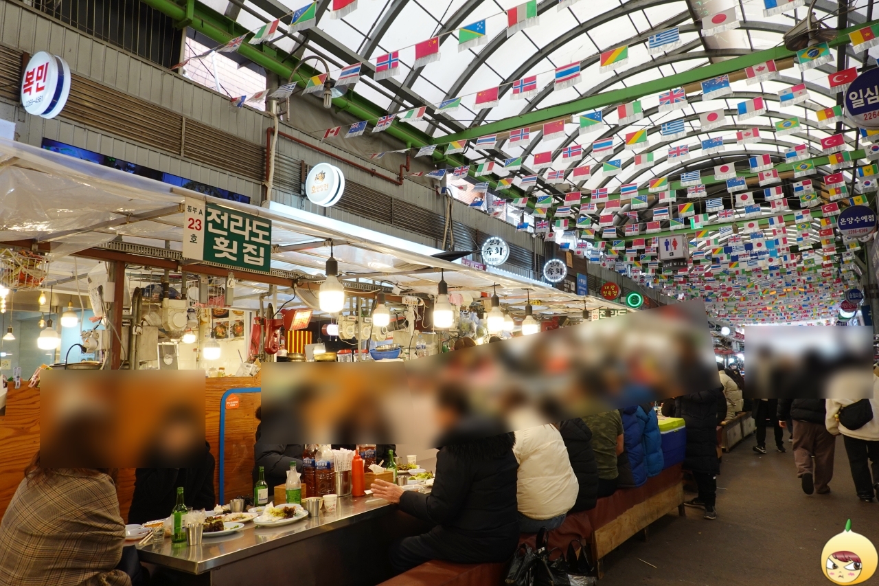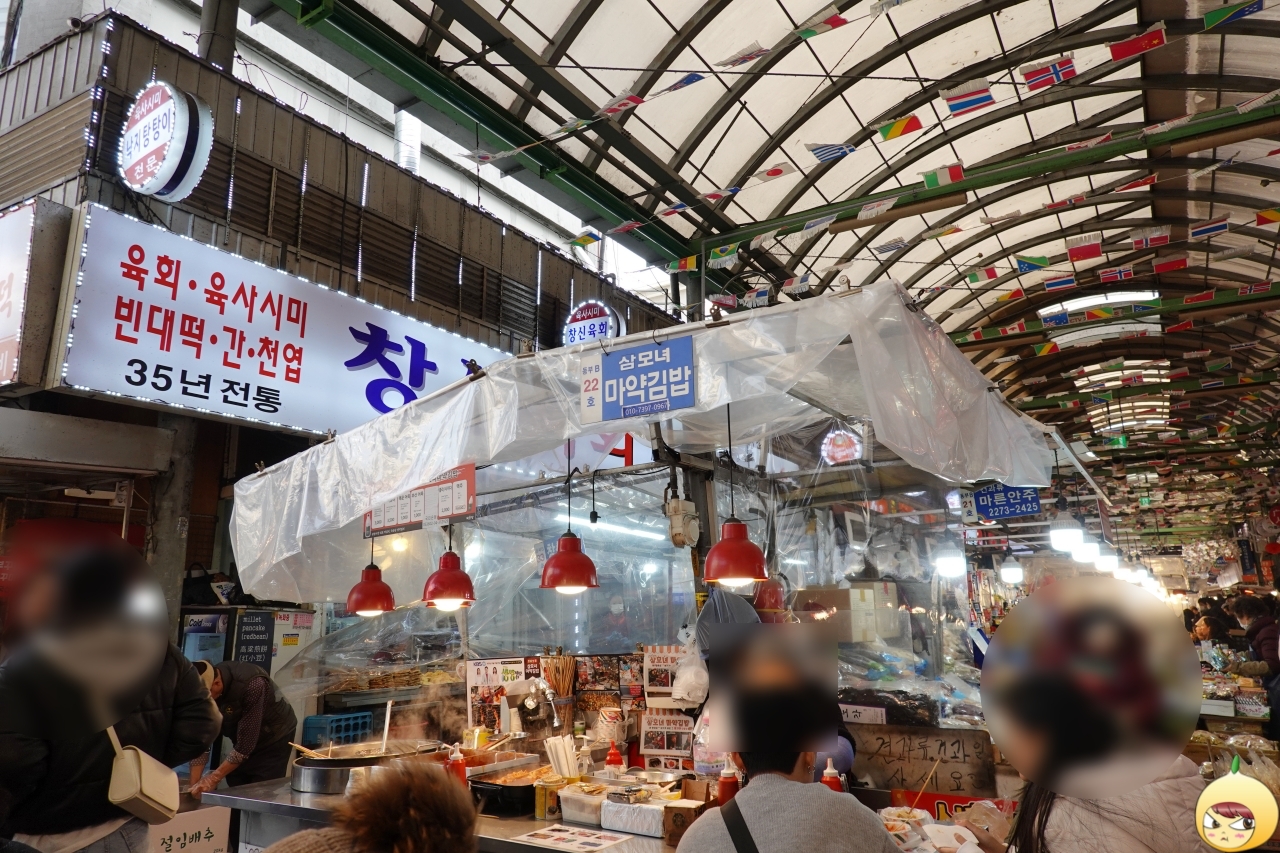 종로5가 광장시장 삼모녀마약김밥, 전라도횟집, 고향손칼국수, 순희네빈대떡