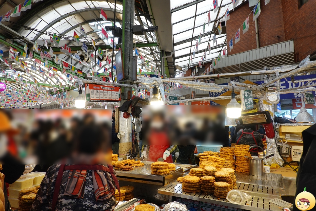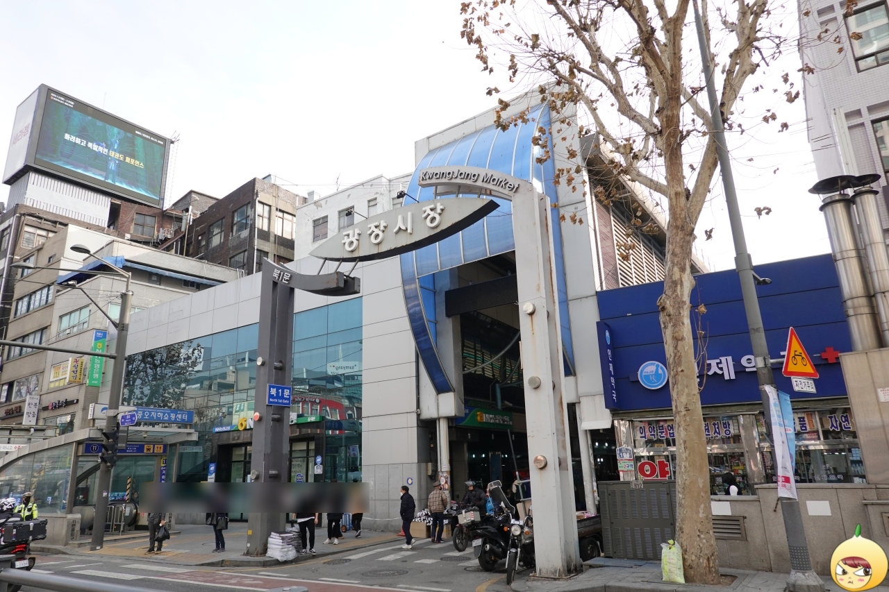 가깝기도 하지만 전통시장 중 광장시장을 제일 많이 찾았다. 이유는 간단하다. 먹거리가 다양하니깐. 설 연휴를 하루 앞두고 찾은 시장은 예상대로 사람이 겁나 많다. 버스에서 내려 길을 건너면 북1문이 나온다. 여기서는 사진만 찍고, 조금 더 걸어서 북2문으로 간다. 평소에도 사람이 많은 북2문에 있는 꽈배기집은 명절 특수까지 겹쳐 인산인해다.