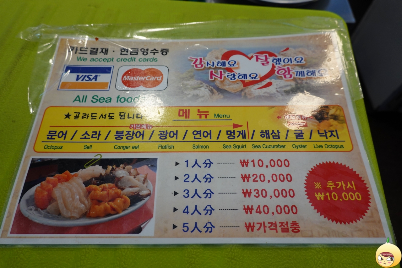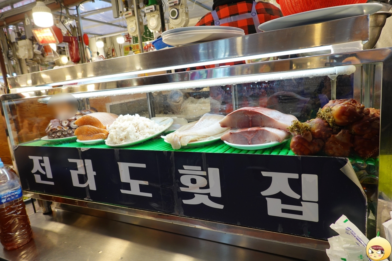 전라도횟집이 좋은 점은 활어회가 아닌 숙성회이며, 1인분 주문이 가능하다는 거다. 메뉴판을 보니 문어, 소라, 아나고라 불리는 붕장어와 광어, 연어, 멍게는 기본으로 나오고 해삼, 굴, 낙지는 메뉴판에서 골라먹으라고 했으니 기본 대신 이거 주세요라고 하면 되나보다. 예전에는 현금만 가능했는데 이제는 카드도 된다.