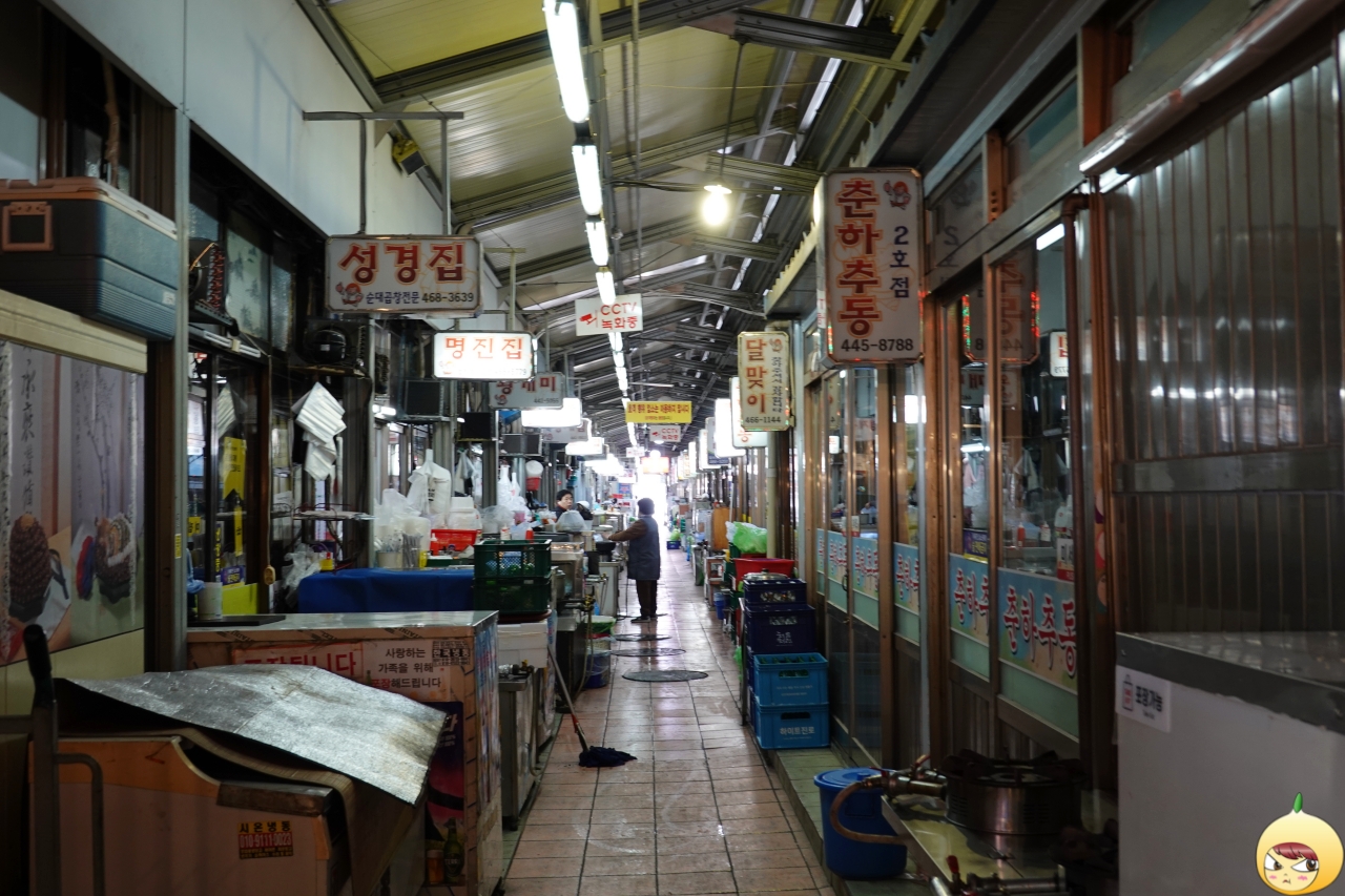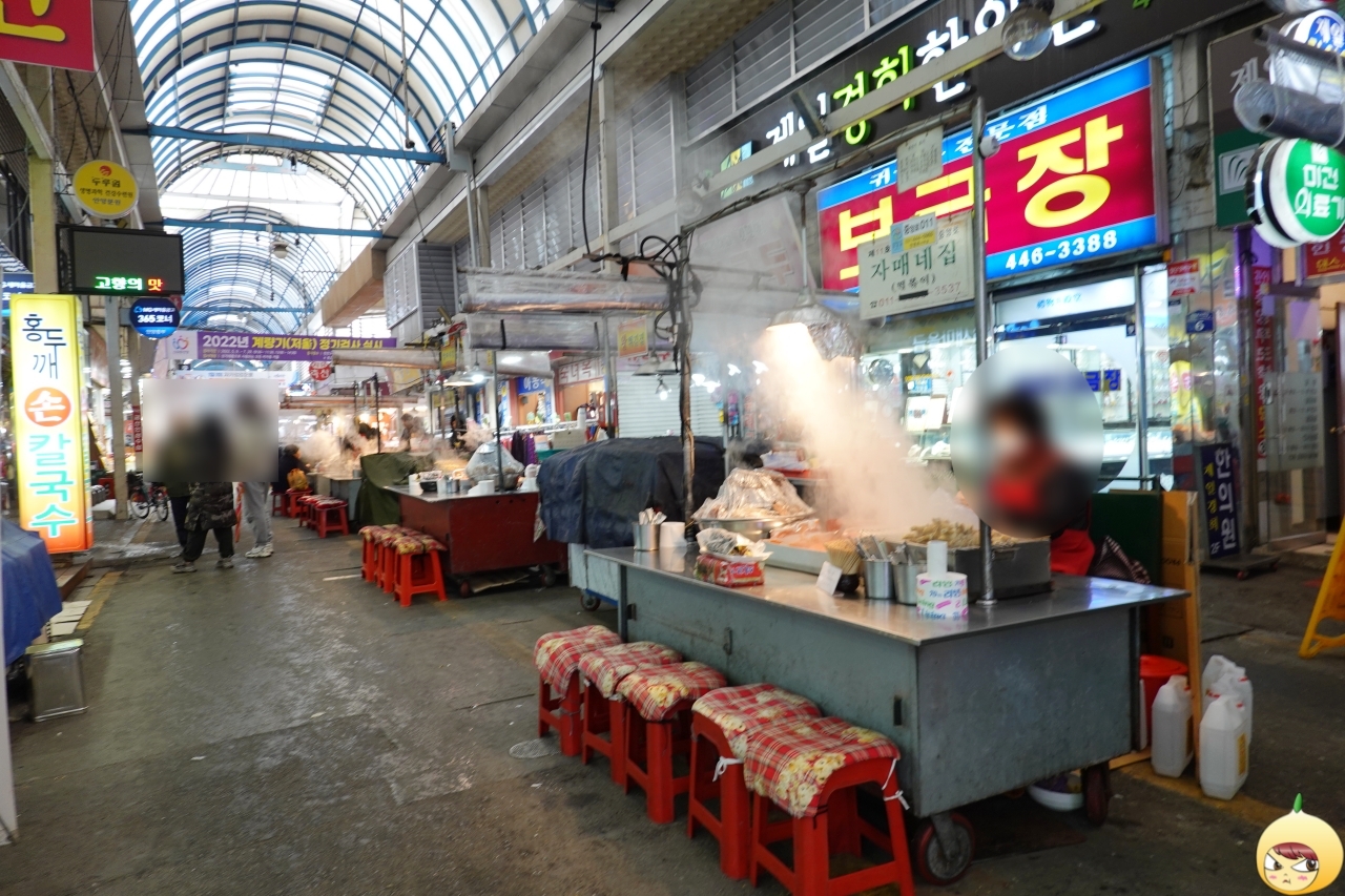 명절 연휴 끝물이라서? 혹은 눈과 함께 날이 급 추워져서? 저녁 장을 보기에는 이른 시간이기도 하지만, 시장은 한적하다 못해 썰렁하다. 곳곳에 문을 열지 않은 점포도 보이고 괜히 온 듯한 느낌적인 느낌이 들지만, 이런 날에 와야 줄서지 않고 바로 먹을 수 있다.