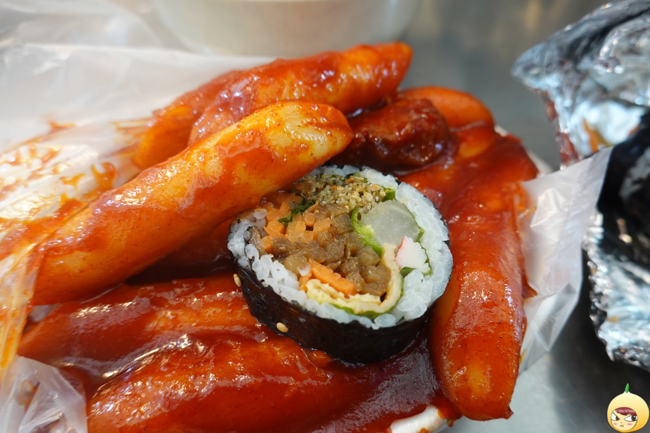 스티커는 2개 이상일 경우에 붙인다. 왜냐하면 한 개는 어떤 김밥인지 알 수 있으니깐. 그걸 알면서도 스티커를 직접 붙이고 싶어서 해봤다. 김밥을 샀으니, 떡볶이 골목으로 가자.