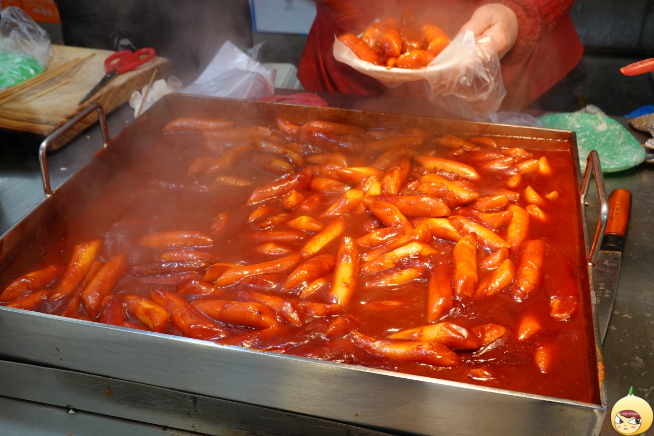 시장 떡볶이는 대체로 밀떡이 많은데, 여기는 죄다 쌀떡이다. 그리고 국물떡볶이가 아닌 걸쭉한 쌀떡복이다. 새빨간 때깔은 엄청 매울 듯 싶지만, 김밥과 같이 먹으면 괜찮을 거다.