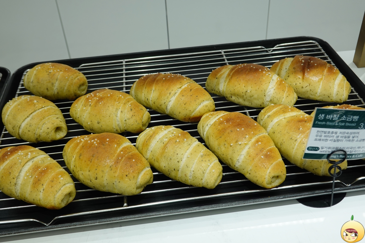 작년이라고 하지만 지난달에 갔을때 4종류의 소금빵이 있었다. 고작 한달 정도 지났을 뿐인데, 누군가 묻고 더블로 가~를 외쳤는지, 소금빵이 4를 묻고 더블을 외쳐 여덟이 됐다. 플레인부터 생크림, 명란 그리고 땅콩크림과 바질 등 맛은 물론, 다채로움까지 보유하고 있는 경기도 안양에 있는 킹스베이커리다.