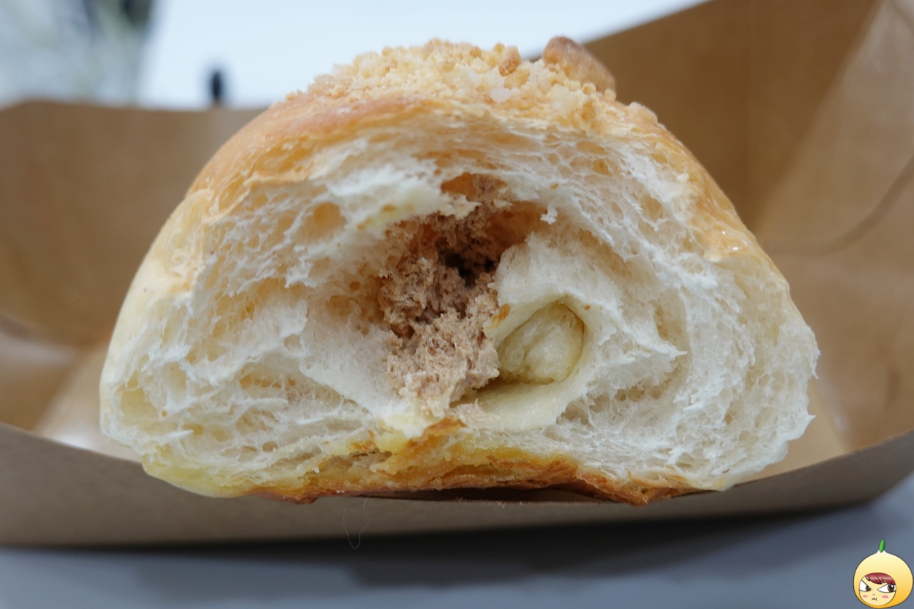 땅콩크림 듬뿍 소금빵(3,300원)은 인스타 이벤트로 받은 빵이다. 인스타에 사진을 올리면 8종의 소금빵 중에서 하나는 준다고 하는데, 안할 이유가 없다. 가장 비싼 카라멜 넛트 소금빵(3,800원)을 고를까 하다가, 속이 아닌 토핑이라고 해서 땅콩크림소금빵을 골랐다. 이름처럼 듬뿍은 아니고, 적당하게 들어있다.