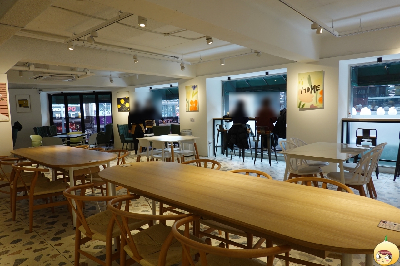 2층 카페는 넓기도 하지만, 공간을 잘 활용했다. 창가석을 기본으로 컴퓨터 작업을 할 수 있는 공간에, 인원수대로 앉을 수 있으며 수다를 떨 수 있는 편안한 좌석도 있다.