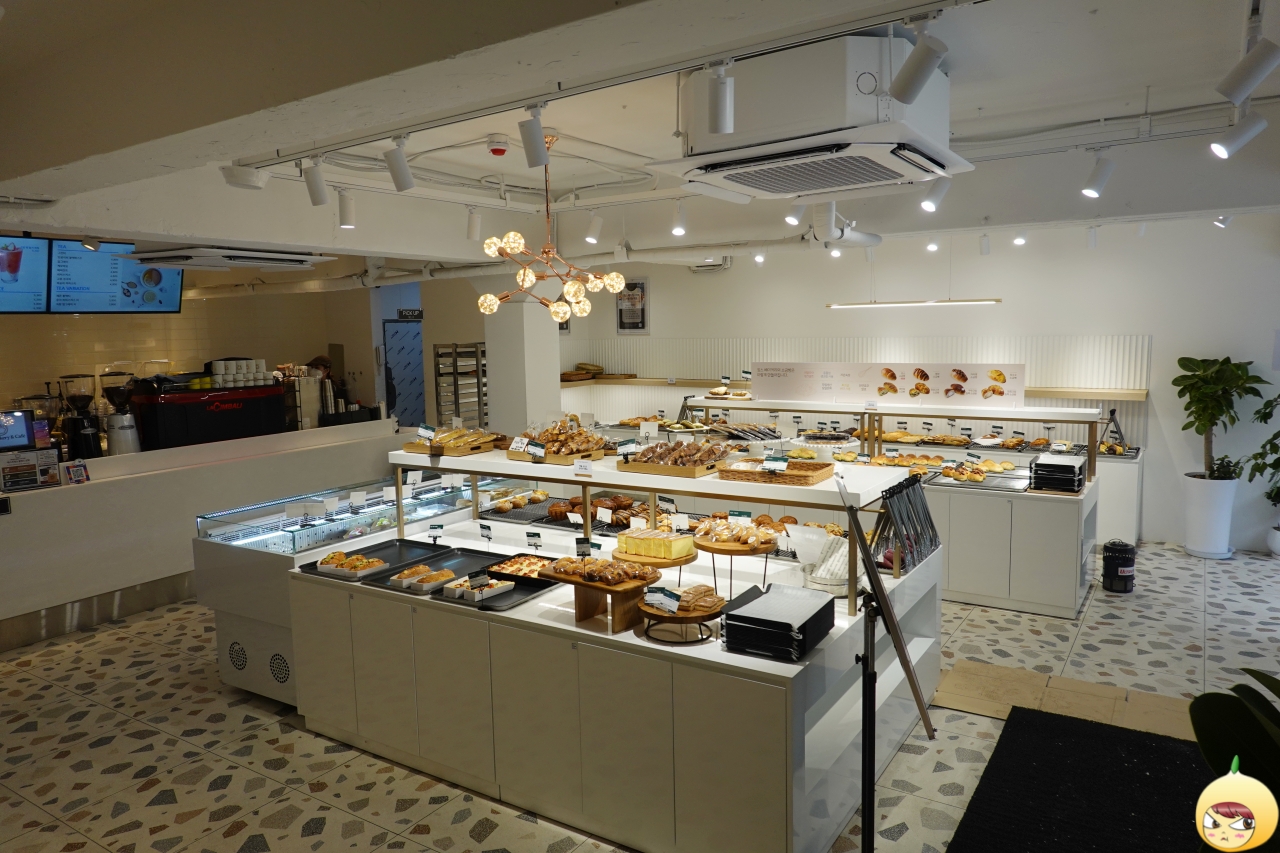 1층은 빵집, 2층은 카페 그리고 3층은 제빵 연구소로 모든 빵을 자체 생산한다고 한다. 공간이 넓어서 진열대가 작게 보일 뿐, 이집의 대표빵이라 할 수 있는 소금빵을 기본으로 종류가 엄청 많다. 전메뉴 도장깨기는 포기했지만, 소금빵만은 정복하고 싶다.