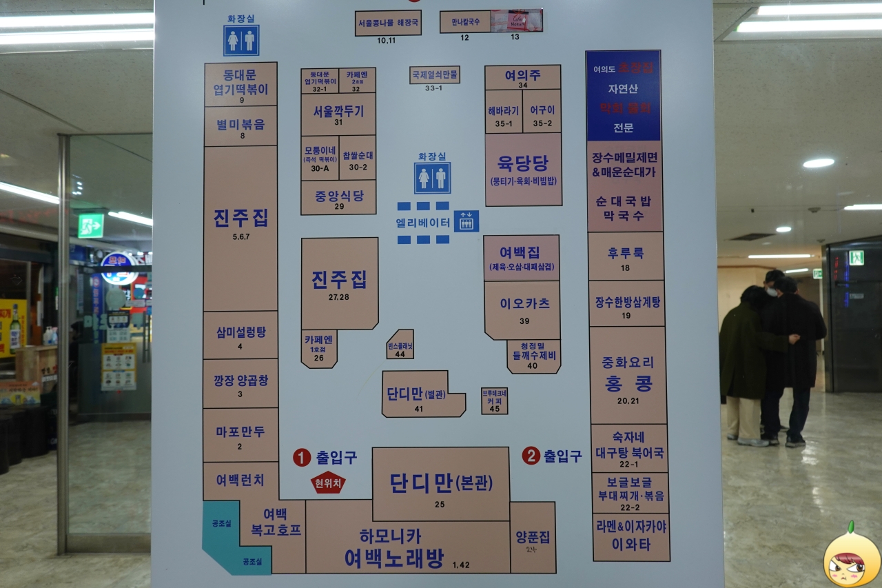 구 여의도백화점, 현 맨하탄빌딩이다. 건물 지하는 음식백화점으로 콩국수로 유명한 진주집이 있다. 진주집 옆집이 별미볶음인지 이번에 처음 알았다. 직화로 볶은 제육에 오삼을 먹을 수 있다고 해서 찾았는데, 안으로 들어가지도 못했다.