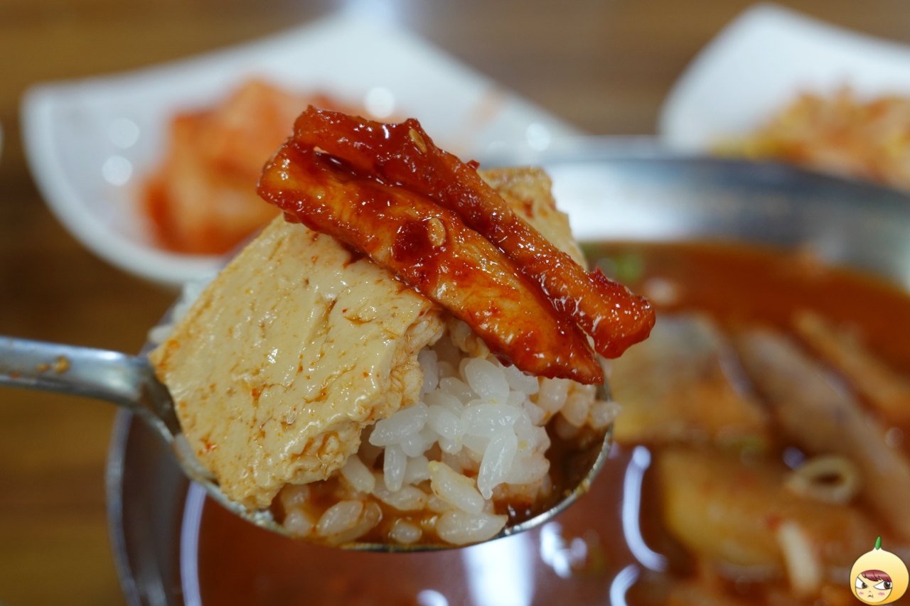반주를 곁들이면 덜 맵지 않을까 싶지만, 목감기로 인해 금주 중이라서 참아야 한다. 그래도 국물만 먹었을때 보다는 밥과 함께 먹으니 덜 맵다. 밥은 국물에 말지 않고 적신다. 그리고 곤이나 살 그리고 두부를 올려서 먹는다. 이때 무말랭이무침을 더하면, 아삭한 식감에 달큰함까지 잘 어울린다.