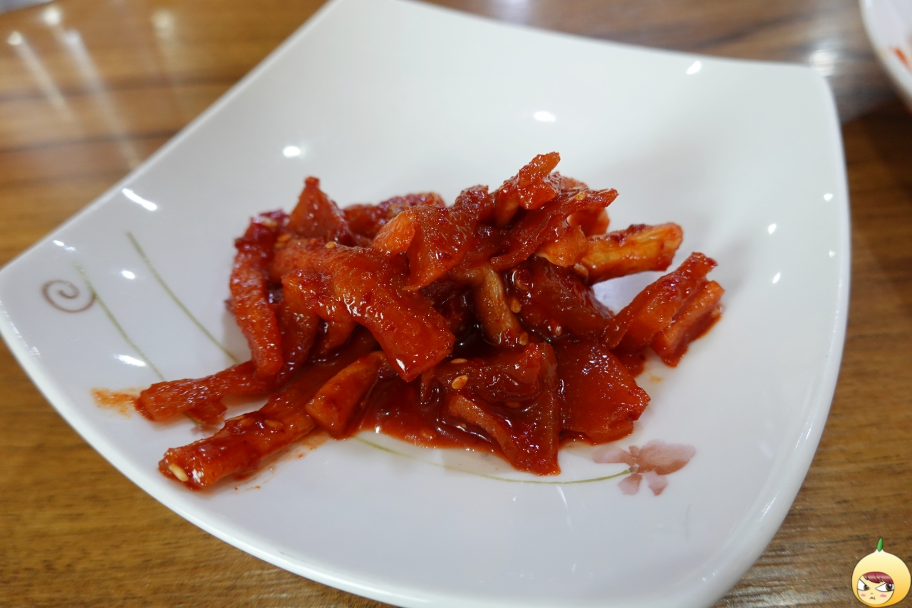 그리고 무말랭이무침이다. 섞박지처럼 보이는 깍두기는 많이 익었고, 콩나물무침은 2% 부족한 맛이랄까? 하지만 무말랭이무침은 적당히 꼬들꼬들하고 달큰해서 좋다. 편식을 하면 안되지만, 이거 하나만 주구장창 먹었다는 거, 안 비밀이다.