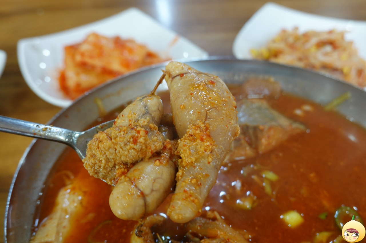 각오는 했지만, 때깔에서 느껴지는 얼큰함이 입술을 때리고 목젖을 가격하면서 넘어온다. 적당하게 칼칼할 줄 알았는데, 무자비하게 얼큰하다. 맵(순)둥이라서 더 맵게 느껴진다. 풀어진 곤이로 인해 국물은 진국이 됐지만, 너무 매워서 건더기에 집중하기로 했다.