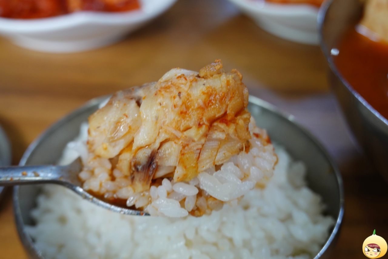 그낭 동태탕이 아니라 일부러 동태알탕을 주문했는데, 곤이(사전: 물고기의 뱃속에 든 알이나 새끼) 사이즈가 맘에 들지 않는다. 실망할뻔 했는데, 숟가락으로 다시 확인을 하니 커다란 곤이가 푸짐하게 들어 있다. 몽글몽글하게 생긴 이리까지 있으면 백점 만점인데 아쉽다.