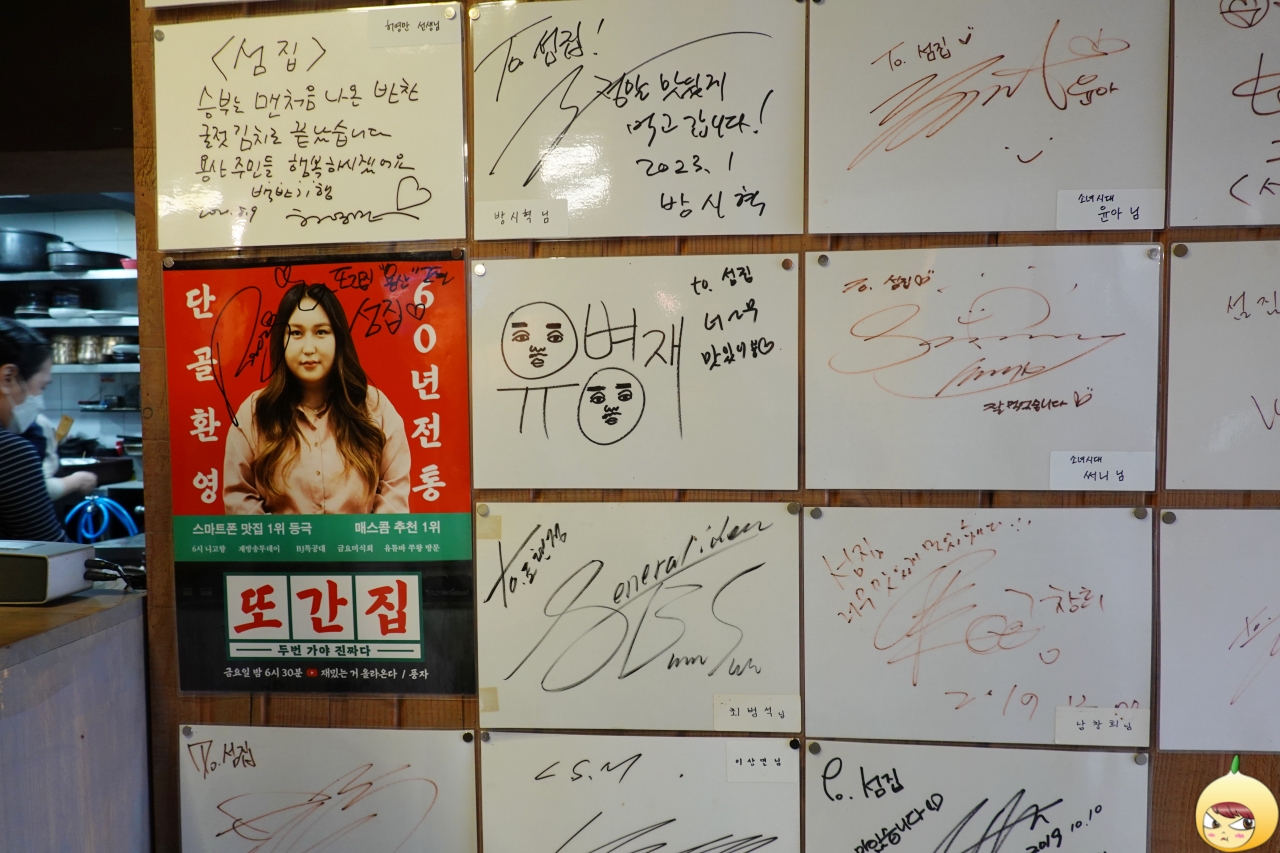 또간집에서 1등에게 주는 삐라, 늘 영상으로 봤는데 직접 보니 새삼 신기하다. 그리고 그 위에는 허영만화백, 그 옆은 BTS의 아버지 방시혁대표 사인이 있다. 대단한 분들의 사인이 엄청 많지만, 신스틸러는 단연코 유병재 사인이다.