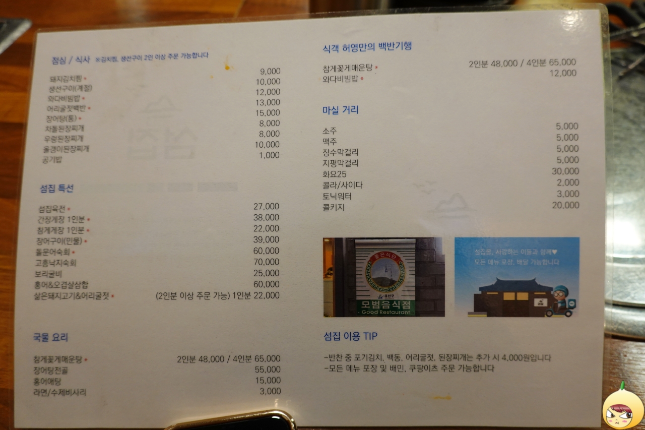 맛있는 녀석들 다음으로 즐겨보는 먹방 프로그램은 지상파가 아니라 유튜브 채널 또간집이다. 파급력이 강하다 보니, 업로드 직후는 무조건 피한다. 3개월 정도 지났으니, 이제는 가도 될 듯 싶어 한강로3가에 있는 섬집으로 향했다.