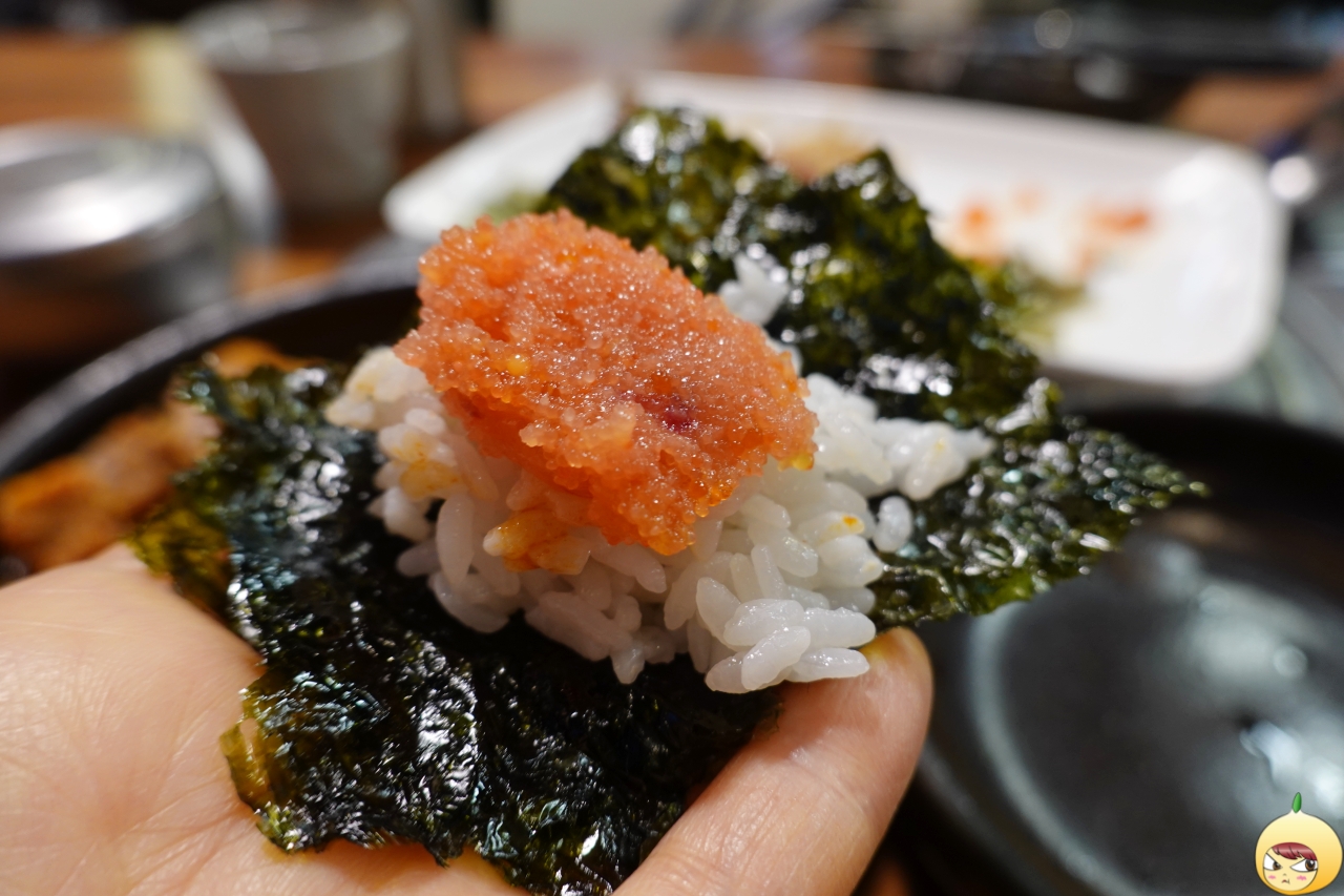 6가지 반찬에는 김이 없었는데, 다른 테이블을 보니 김이 있다. 혹시 혼자라서 김대신 나물 반찬을 줬나 싶어, 따로 요쳥을 해서 받았다. 굳이 김이 없어도 되지만, 있으면 더 맛나게 먹을 수 있다는 거, 안 비말이다. 그리고 명란젓 무침이라고 해야 할까나? 톡톡 씹히는 맛에 짭조름한 감칠맛이 입 안 가득 터진다. 허나 욕심내서 한번에 많이 먹으면 무지 짜다.