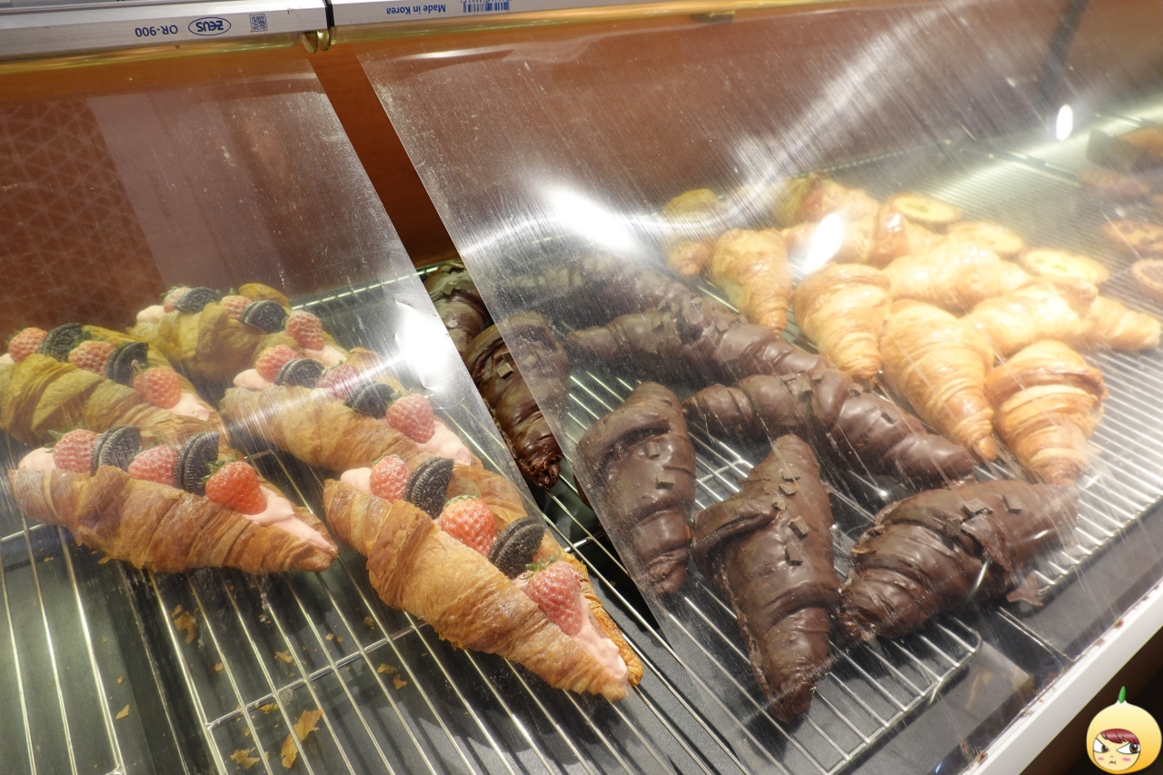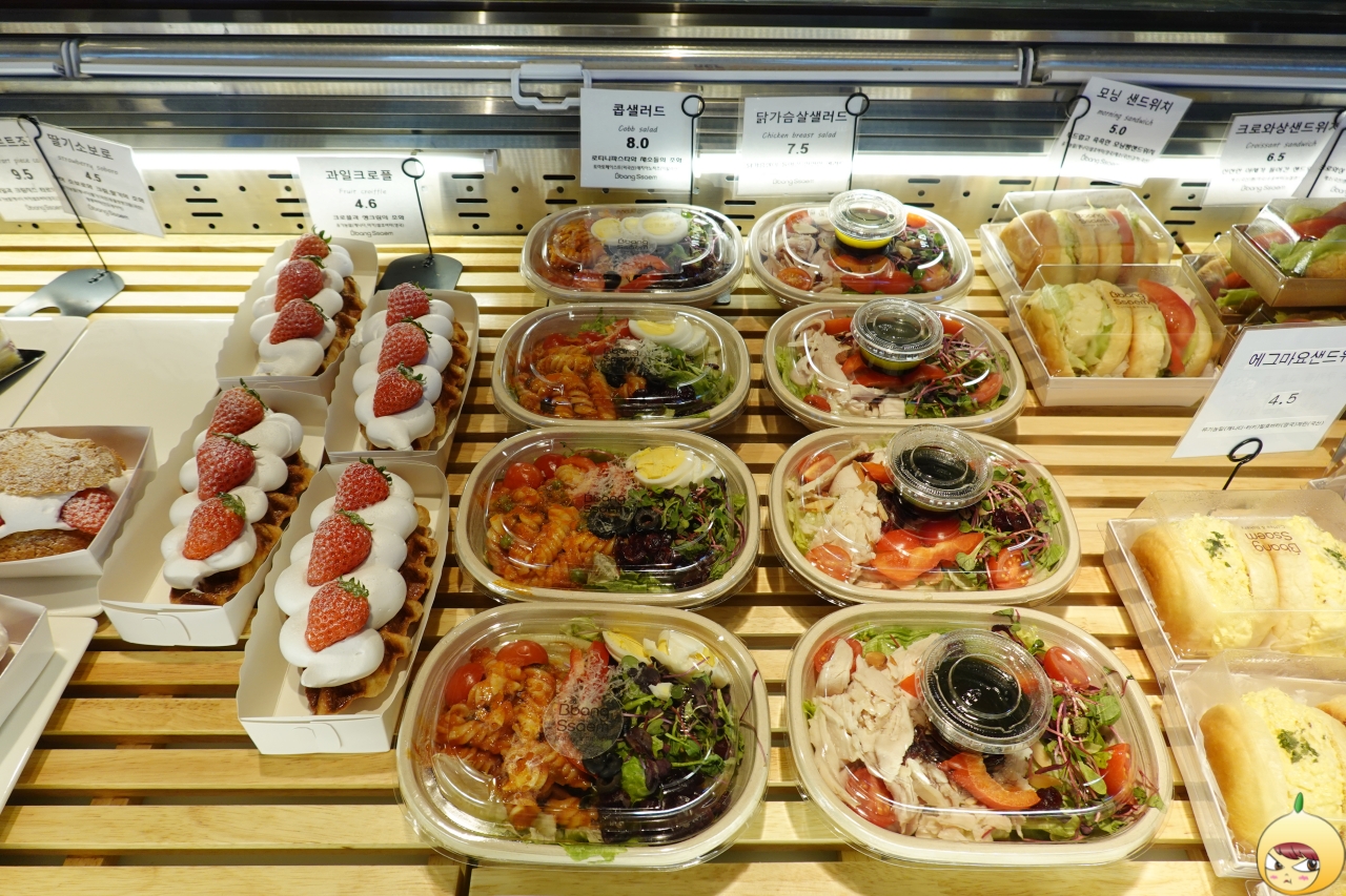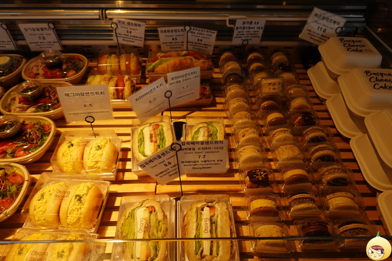 150평답게 규모가 겁나 넓다. 1층 빵 진열대 뒤로 테이블이 있지만, 2층으로 올라갈 예정이다. 왜냐하면 공간이 훨씬 넓으니깐. 도심 속 대형 베이커리카페라니 생존 전략이 있는지 궁금하지만, 물어볼 수 없기에 혼자만의 추측으로 주인장 = 건물주님으로 정했다. 공간이 넓으면 빵도 많을 거다. 한번의 방문으로 끝나지 않을 거라서, 눈길이 가는 빵 위주로 카메라에 담았다.