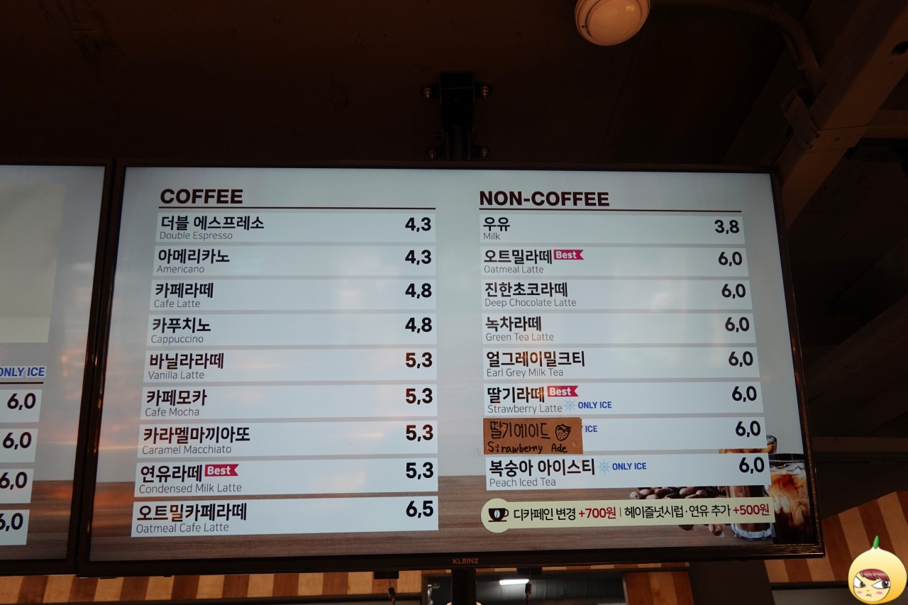 빵은 전체적으로 가격대가 있는데 반해 음료 가격은 나쁘지 않다. 종류는 디따 많지만, 언제나 시원한 아메리카노(4,300원)를 주문한다. 2샷이 들어간다고 하니, -1샷을 할까 하다가 말하지 않았다. 대신 맹물보다 얼음을 더 많이 달라고 했다. 왜냐하면 얼음을 깨물어 먹는 걸 좋아해서다.
