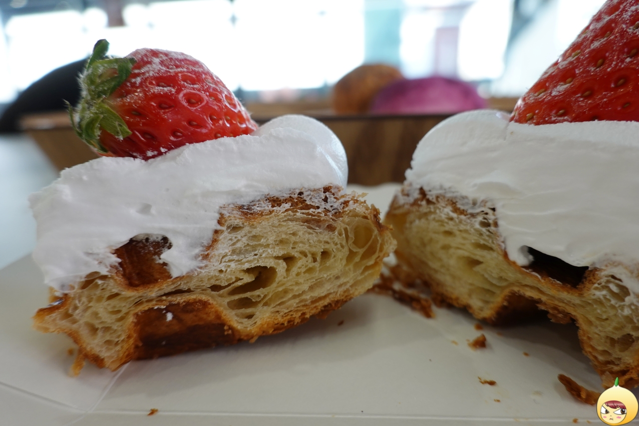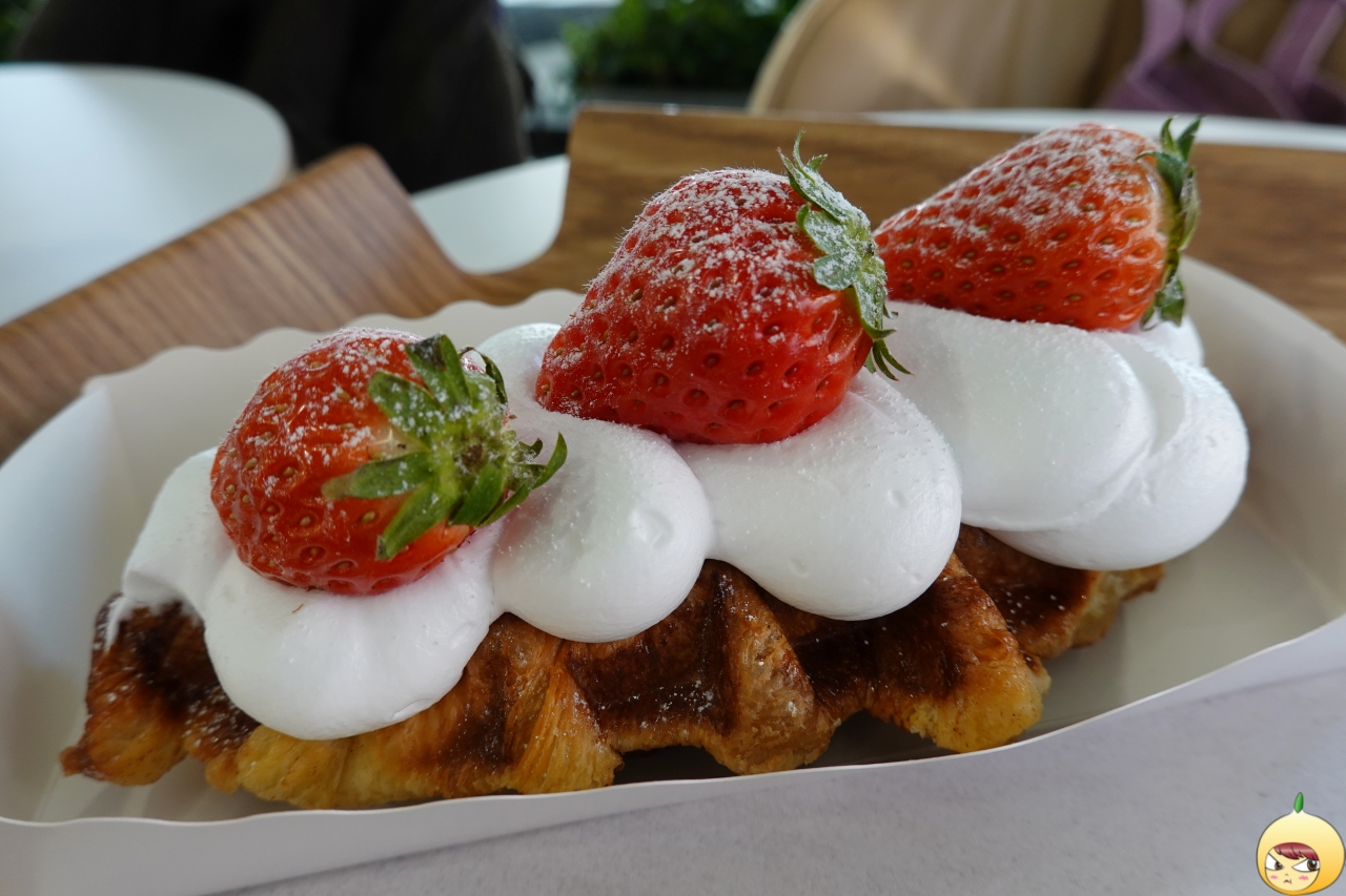 크로플은 크루아상 반죽을 와플기에 눌러 만든 빵으로, 크루아상과 와플의 합성어다. 과일크로플(4,600원)은 크루아상 특유의 결과 부드러움은 사라졌지만, 압축으로 인해 쫄깃함이 새로 추가됐다. 와플과 비슷한데 좀 더 단단해졌으며, 부드러운 생크림과의 조화는 말해 뭐해다.