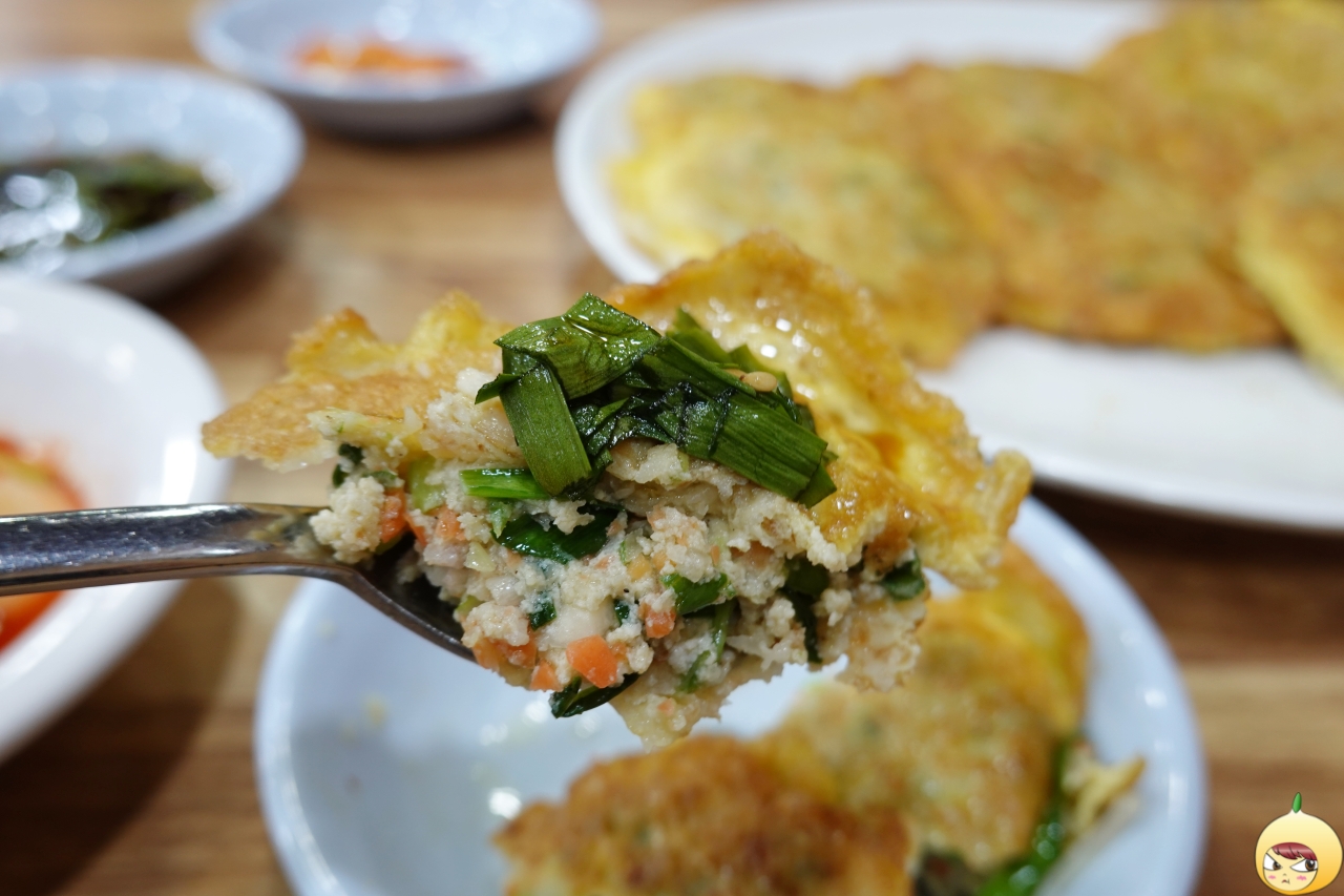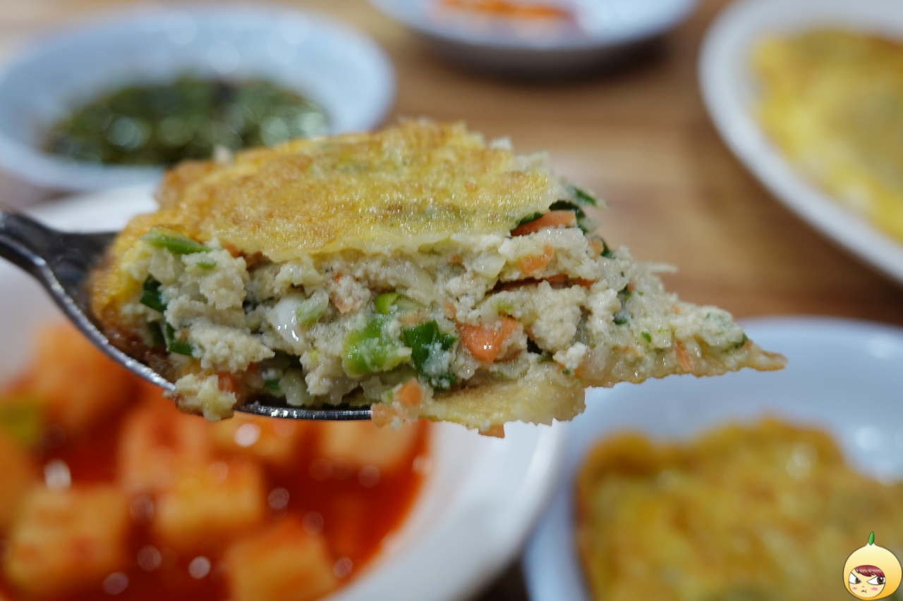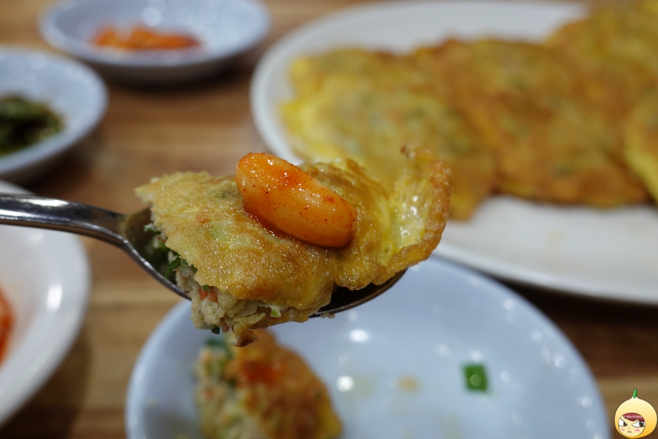 이렇게 큰 엽전은 박물관에도 없을 거다. 나오자마자 고소한 기름과 계란 냄새가 퍼지고, 반질반질 윤기가 나는 8개 돈저냐가 반갑다고 인사를 한다. 가장자리는 얇은 듯하나, 중앙으로 갈수록 동그랑땡 특유의 도톰함이 드러난다. 누군가에게는 한입 크기가 될 수 있지만, 갓나온 돈저냐는 겁나 뜨겁다. 고로 반으로 나누고 다시 반으로 나눈 다음 호호 불면서 먹어야 한다.