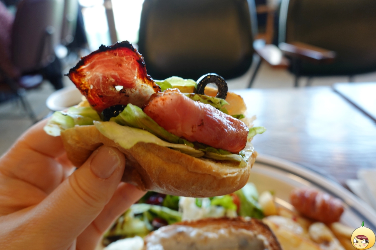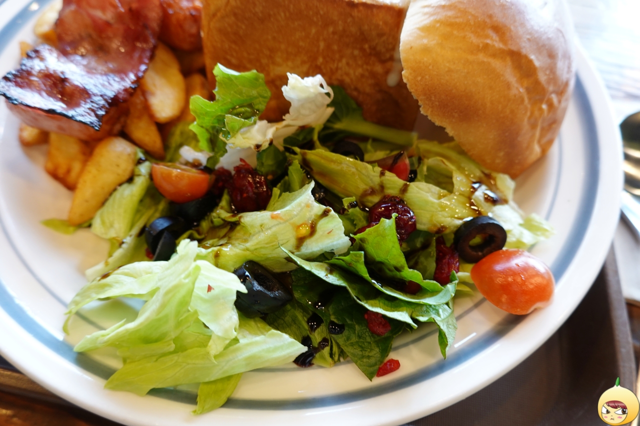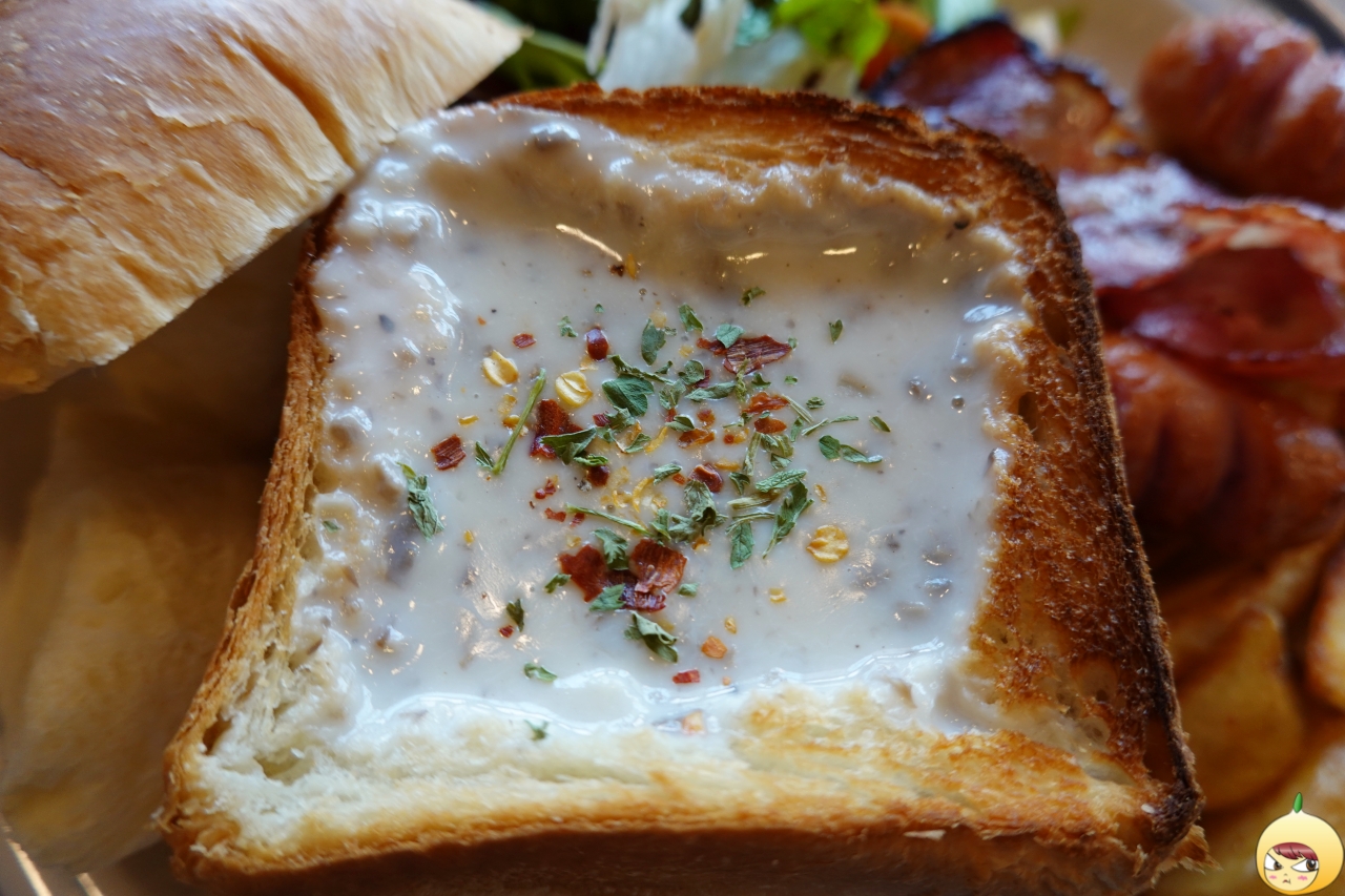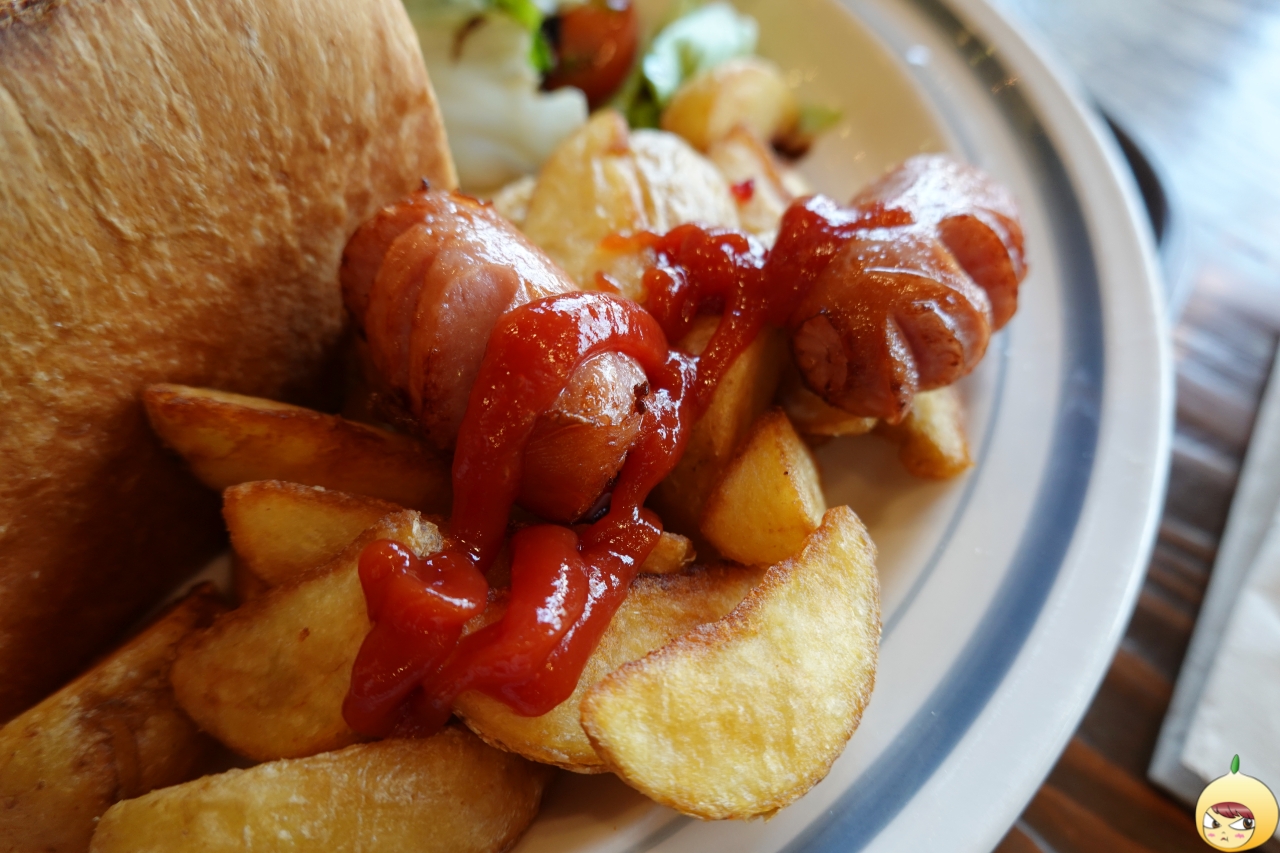 주연은 송이를 품은 브레드, 조연으로 샐러드와 감튀 그리고 베이컨 & 비엔나 소시지도 있다. 미니 웨지감자와 비엔나 소시지는 케첩의 도움을 받는 게 좋다.