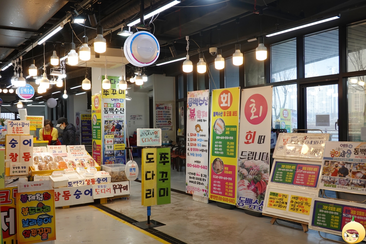 목적지는 2층인데, 1층에서 벗어나지 못할 뻔 했다. 라메르 베이커리카페는 서해5도수산물복합문화센터 2층에 있는데, 1층에 수산물 판매장이 있는지 몰랐다. 마트같은 곳인가 했더니, 횟집도 있다. 2시 약속이 없었더라면, 브런치는 개뿔, 제철 쭈구미에 낮술을 했을 거다.