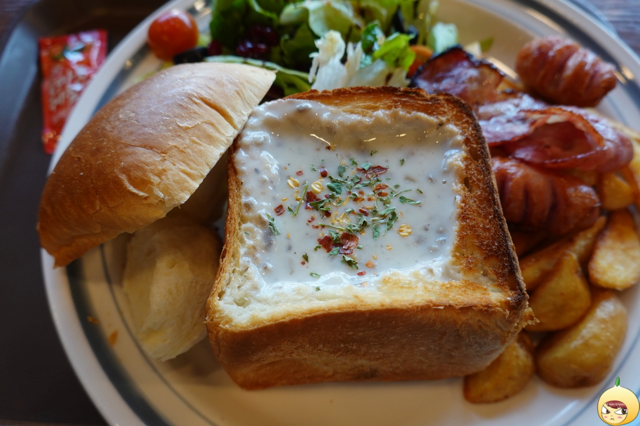 해매지 않았어도 라메르세트를 먹을 수 있었는데, 아쉽고 또 아쉽다. 늦게 온 나의 잘못이니 뷔페가 아닌 단품으로 주문한다. 빵종류는 그닥 없더니 브런치 종류는 꽤 된다. 프렌치토스트가 끌렸지만, 국물이 필요해서 송이를 품은 브레드 플레이트(14,900원)를 주문했다.