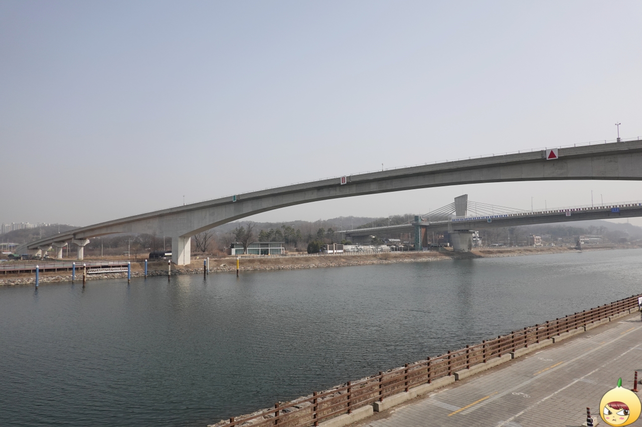 별다른 의심없이 한참을 걷고 있는데, 느낌이 이상하다. 멈춰서서 주변을 살피니, 지상으로 내려가는 엘리베이터가 경인아라뱃길 건너편에 있다. 라메르 베이커리카페는 건너 필요가 없기에, 왔던 길로 되돌아간다. 역에서 카페까지 15분이면 갈 수 있는데 실상은 30분이나 걸렸다.
