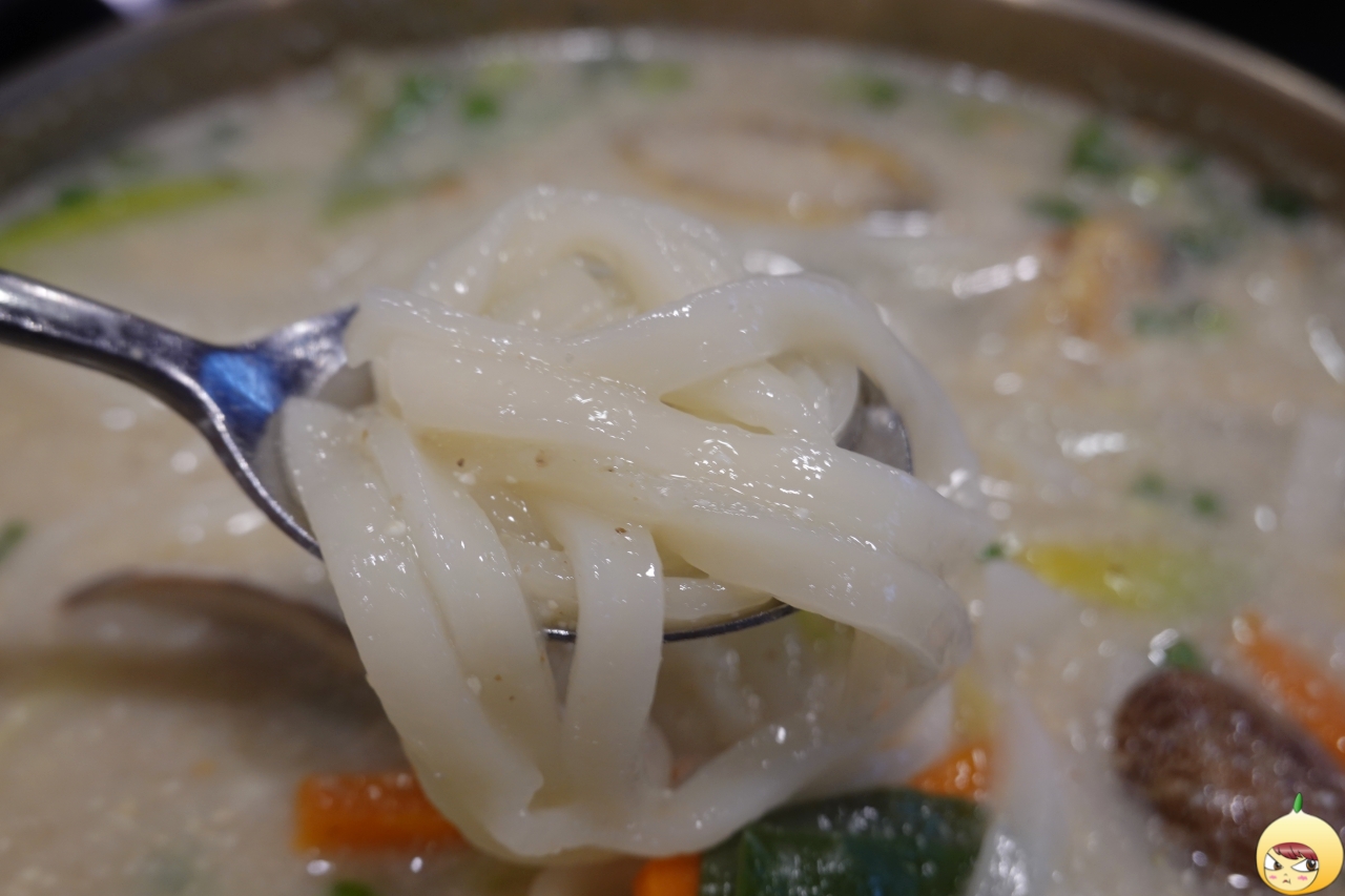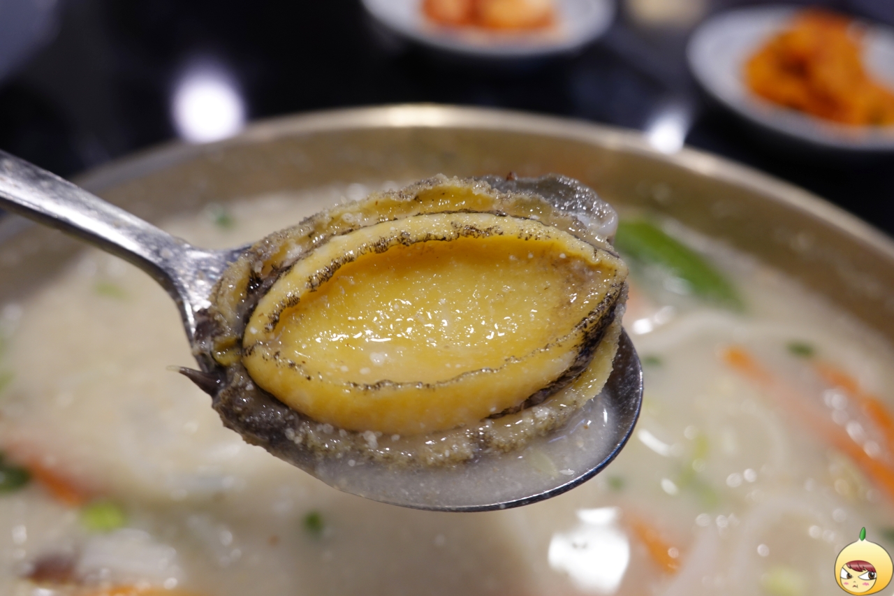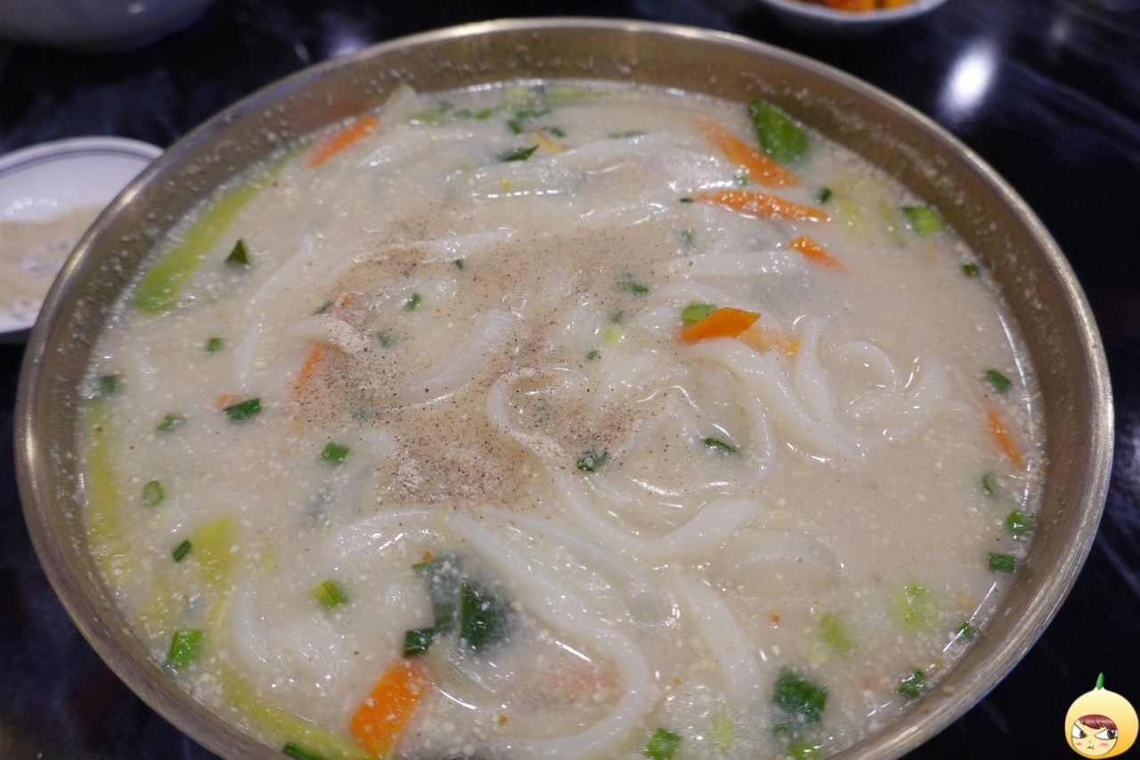 배너광고에 나와있는 칼국수 그림 옆으로 '들깨를 넣어 고소한 국물이 일품'이라고, 이걸 지금 봤다. 전복에 바지락이 들어있는 해물칼국수이니 당연히 맑은 국물일 줄 알았다. 하지만 보이는 대로 들깨가 들어있는 걸쭉한 칼국수다.