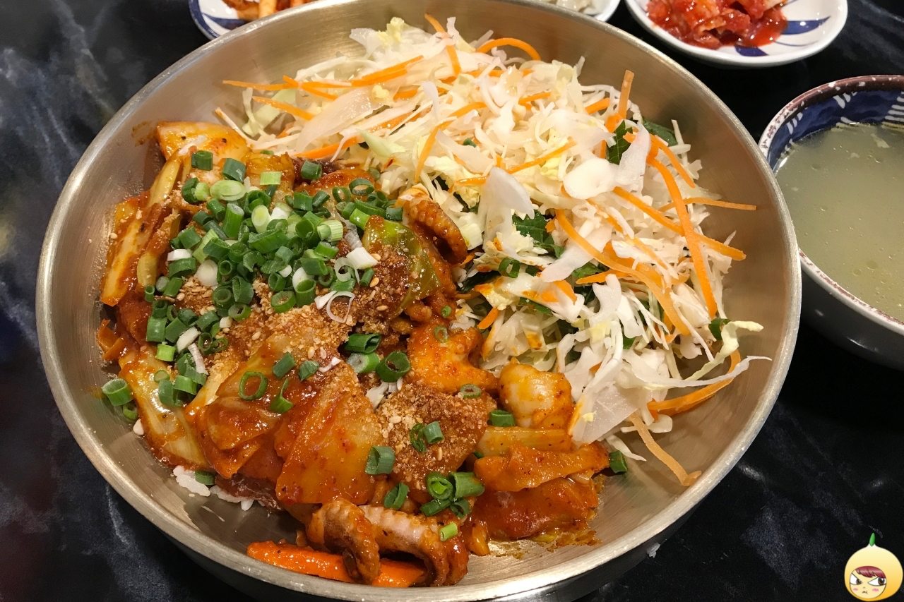 밖에 있는 배너긴판에서 본 식사메뉴 중 주꾸미덮밥(10,000원)을 주문했다. 맵(순)둥이라서 많이 매운가요라고 물어보니, 신라면 수준도 아니란다. 그렇다면 문제없어~