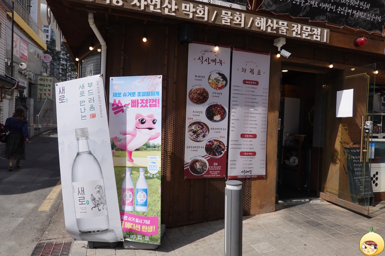 마포점이라고 했으니 프랜차이즈다. 비슷한 컨셉으로 연안식당이 있는데, 둘 다 해산물을 전문적으로 취급하는 곳이다. 다른 점이라면, 연안은 남도 지역, 마케는 동해 지역이 아닐까 싶다. 여기서 걸어서 30초도 안되는 거리에 연안식당이 있다. 꼬막비빔밥을 먹으러 자주 갔지만, 이번에는 신상(?)이다.