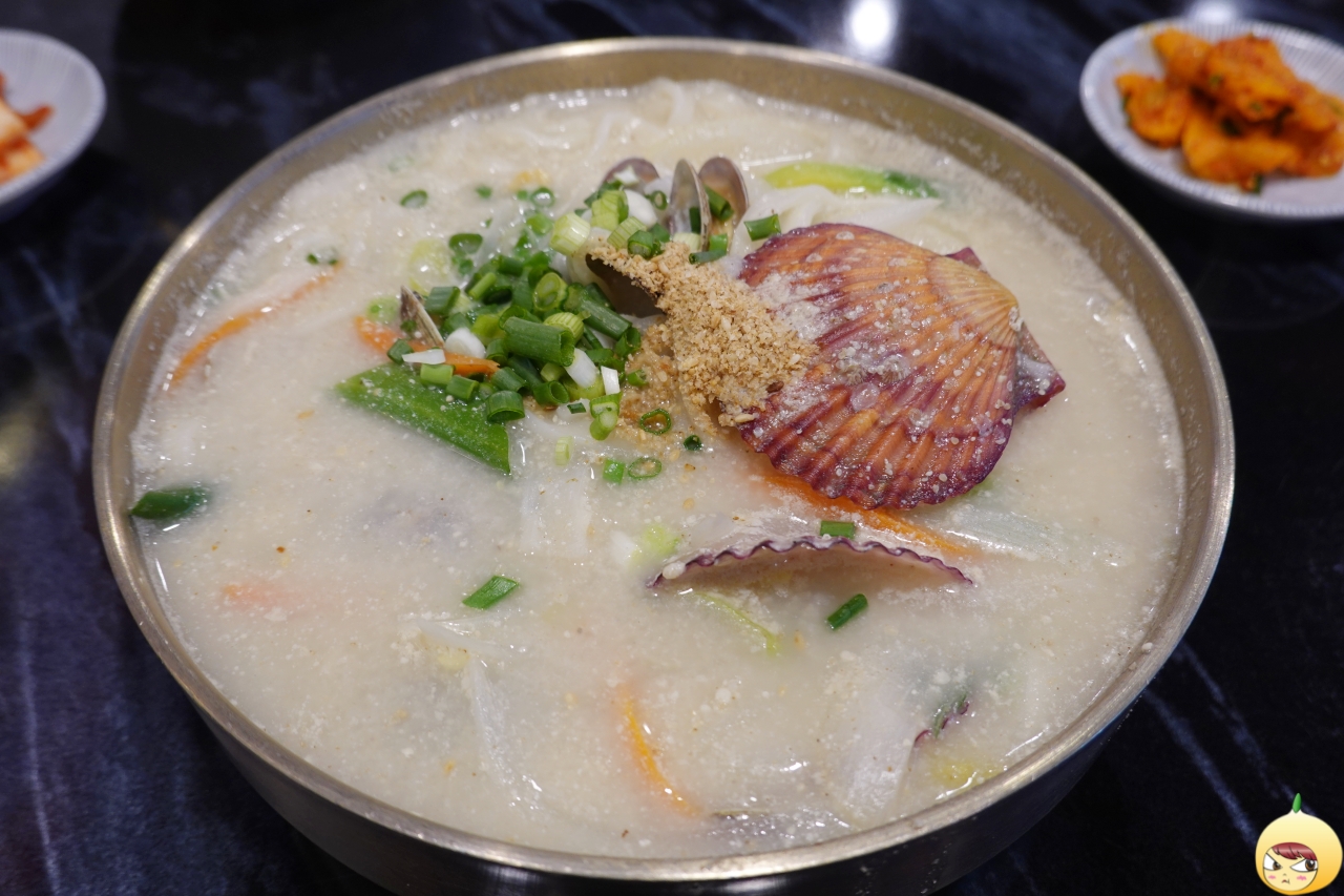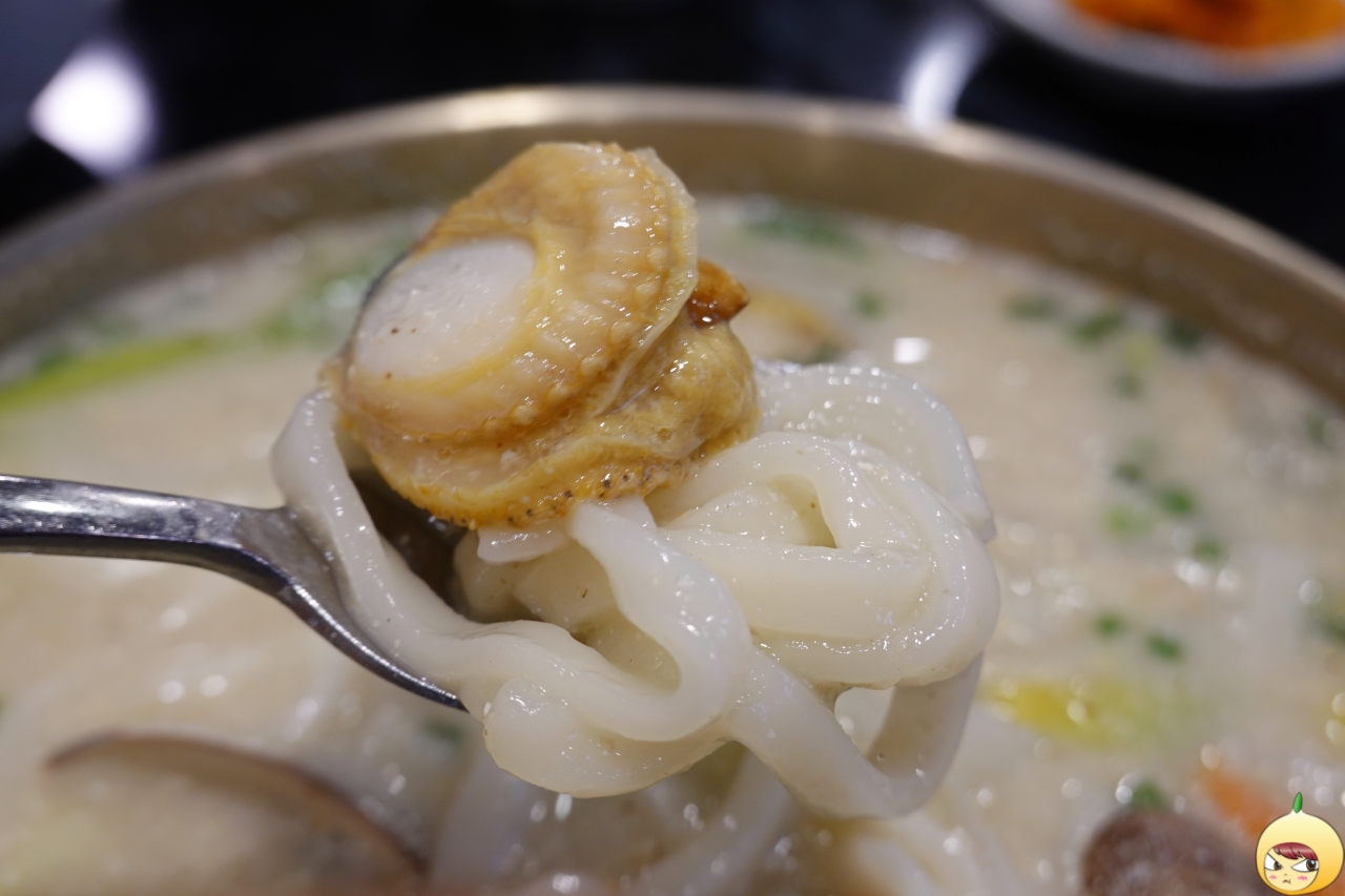 가리비를 시작으로 전복과 바지락 등 조개만 골라 먹으면 이루말할 수 없을 정도로 행복하다. 그런데 국물과 함께 면을 더하면 맛이 애매해진다. 들깨칼국수와 해물칼국수를 겁나 좋아하지만, 이 둘의 만남은 반대요~