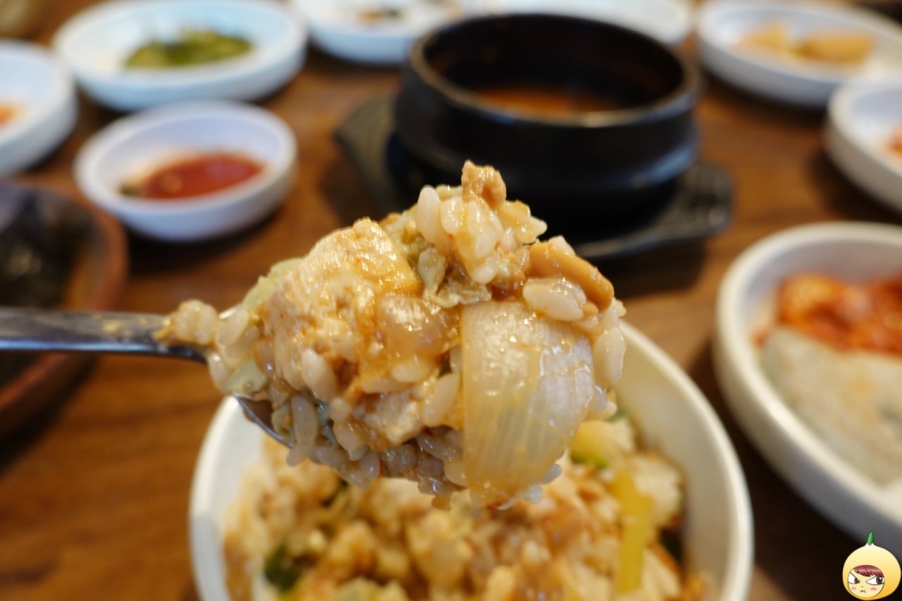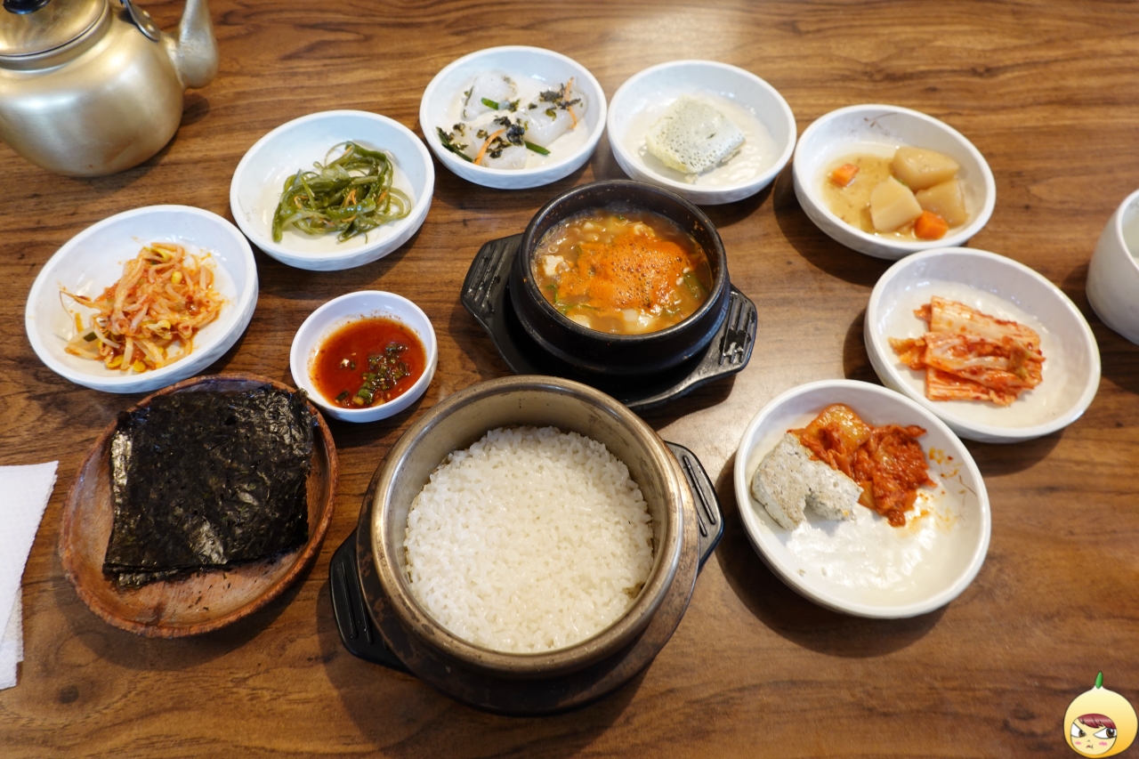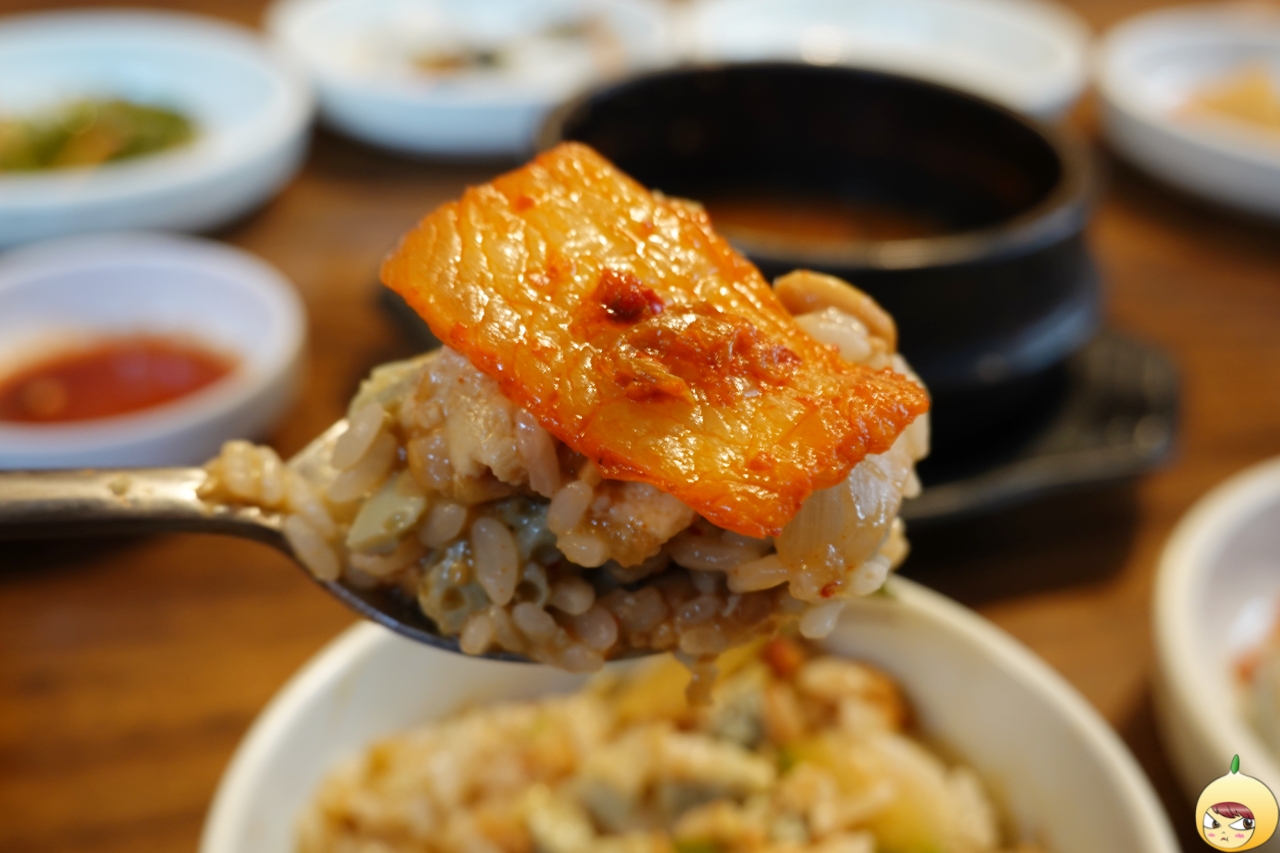 점심특선정식에는 여덟가지 반찬이 나온다 .이중 흑두부구이와 볶음김치가 메인은 듯 싶다. 왜냐하면 리필이 안되기 때문이다. 반찬은 간이 강하지 않아 좋은데, 콩나물무침과 미역줄거리볶음은 살짝 짭잘해도 좋을텐데 심심하다.