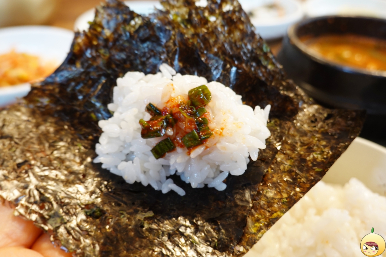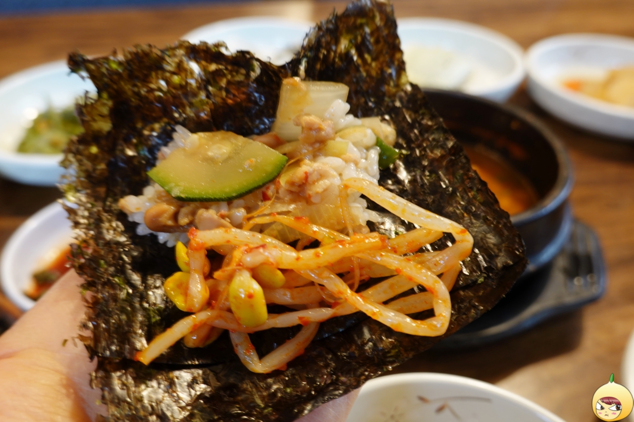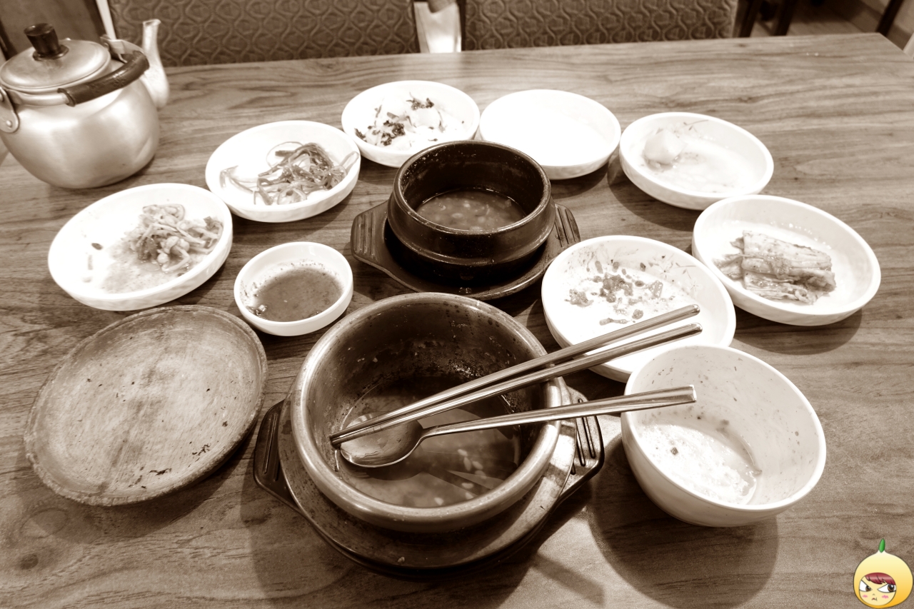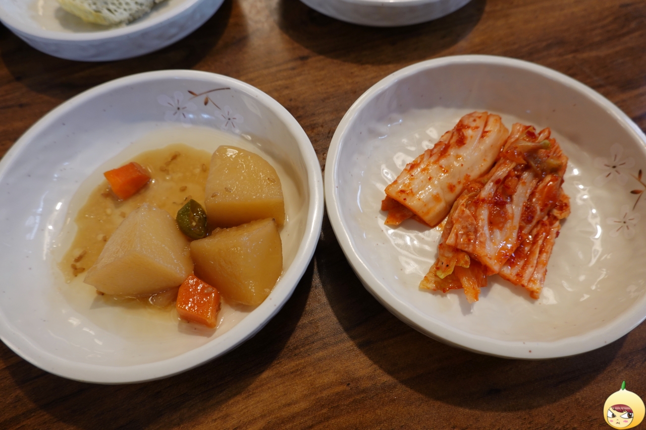 점심특선정식에는 여덟가지 반찬이 나온다 .이중 흑두부구이와 볶음김치가 메인은 듯 싶다. 왜냐하면 리필이 안되기 때문이다. 반찬은 간이 강하지 않아 좋은데, 콩나물무침과 미역줄거리볶음은 살짝 짭잘해도 좋을텐데 심심하다.