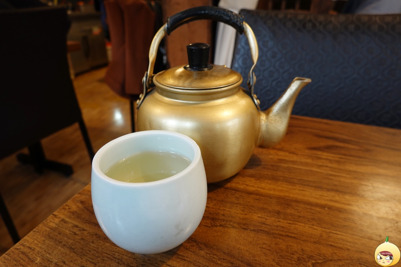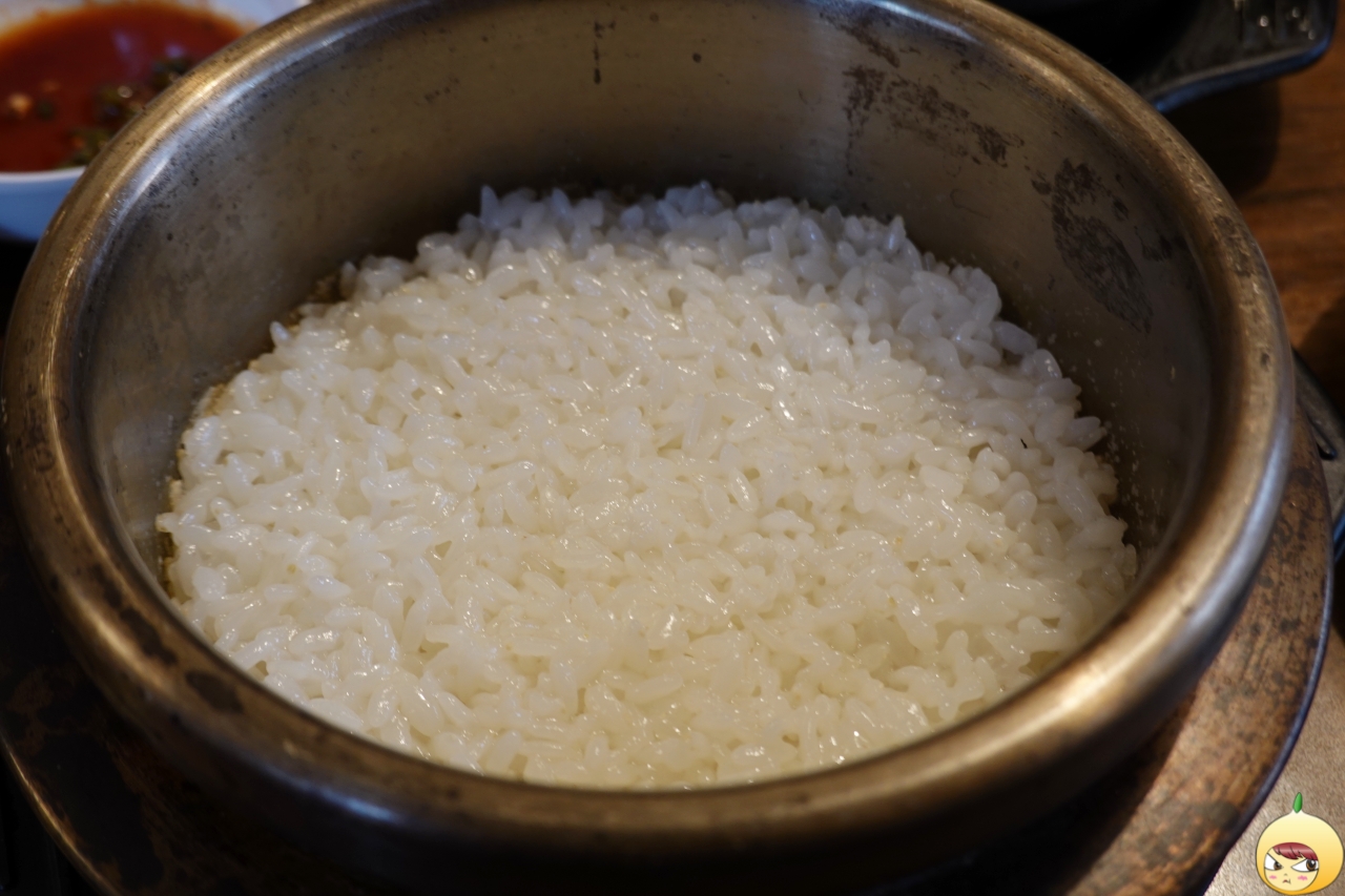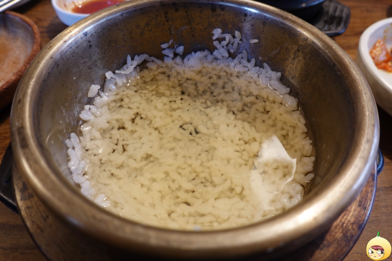 볶음김치에 고기는 없지만, 두부에 올려서 먹으니 막걸리가 마시고 싶다. 사실 양은주전자가 나와서 살짝 설렜다. 막걸리가 아닐까 괜한 기대를 했는데, 솥밥용 뜨거운 물이다.
