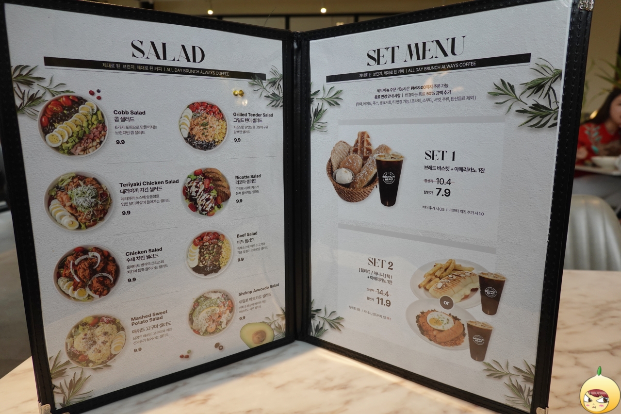 원래는 가볍게 쿠키와 커피를 즐기면 책을 읽으려고 했다. 일정이 꼬이는 바람에 브런치 메뉴판을 앞에 두고 뭘 먹어야 할지 고민에 고민을 거듭했다. 책처럼 두꺼운 메뉴판을 넘기면서 파스타, 샌드위치, 피자 페이지는 건너뛰었다. 샐러드에서 잠시 멈칫했다가, 옆 페이지에 나와있는 세트1이 시선이 딱 꽂혔다.