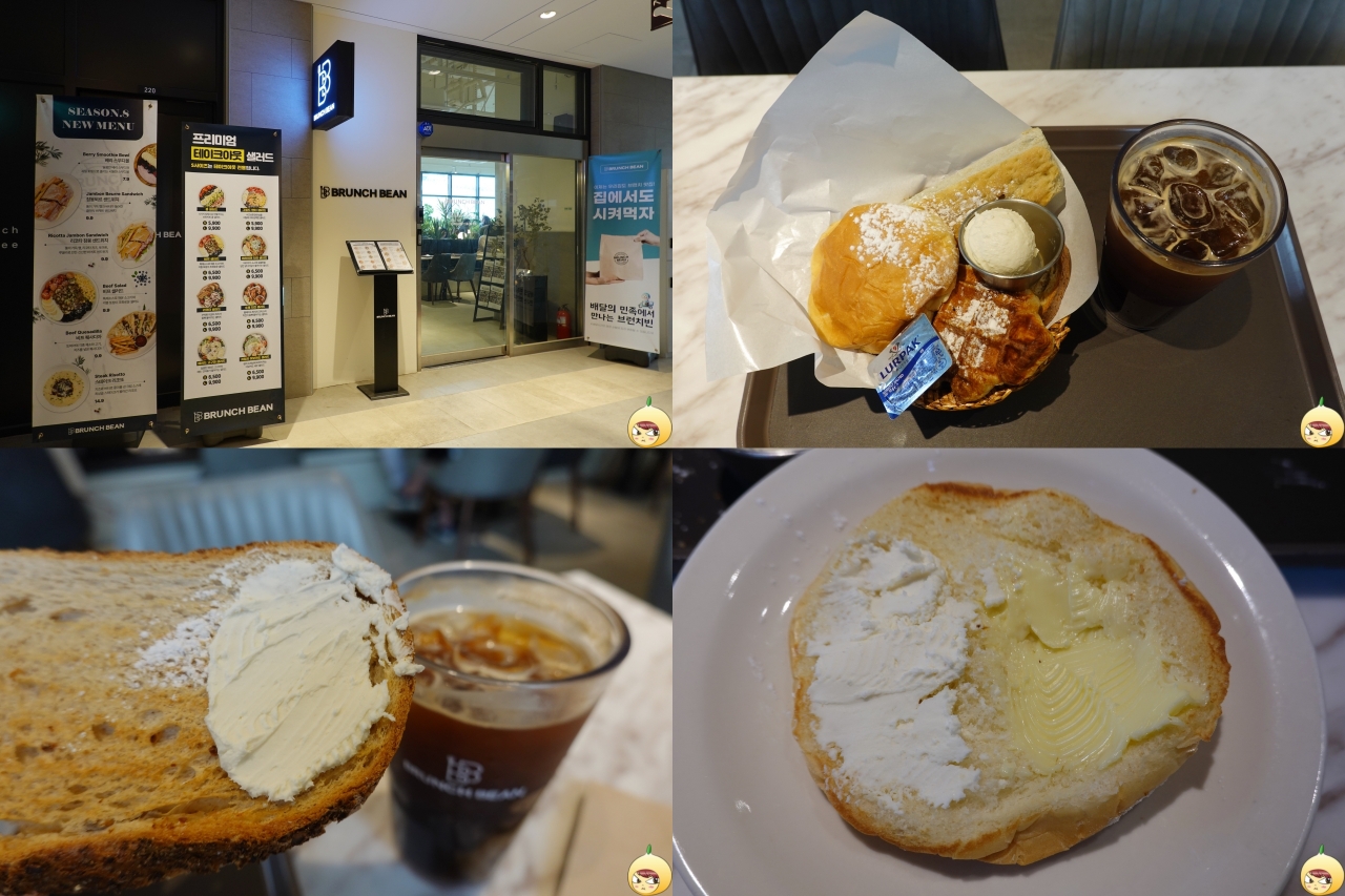 호밀빵, 크로플, 햄버거번 그리고 포카치아 등 4종류의 빵에 버터와 리코타 치즈가 바구니에 담겨있다. 여기에 얼음 동동 아메리카노를 더해 세트1이라 부른다. 브런치답게 푸짐하고 다양한데, 빵만 있으니 힘들다. 딸기잼 정도는 있어도 좋을텐데, 경기도 고양시에 있는 브런치빈 일산점이다.