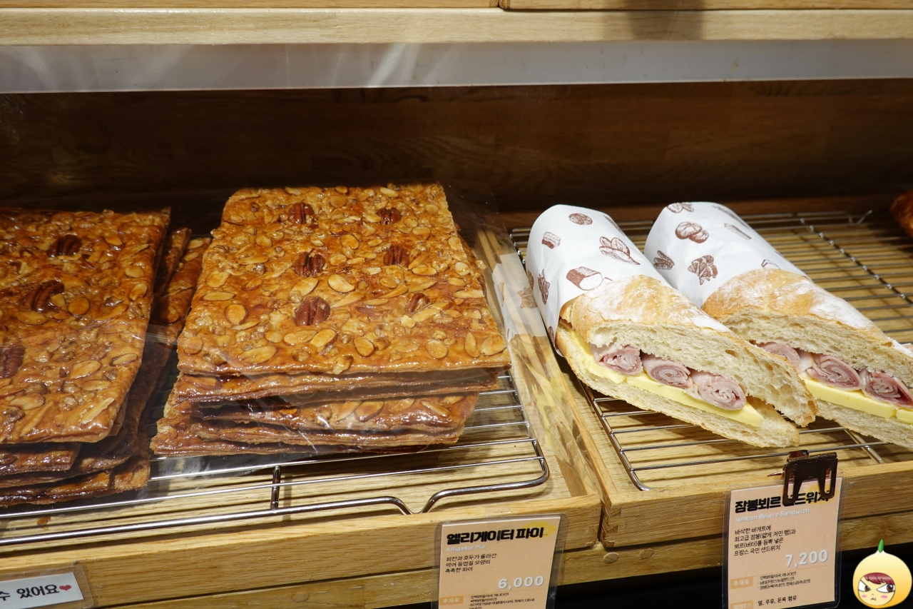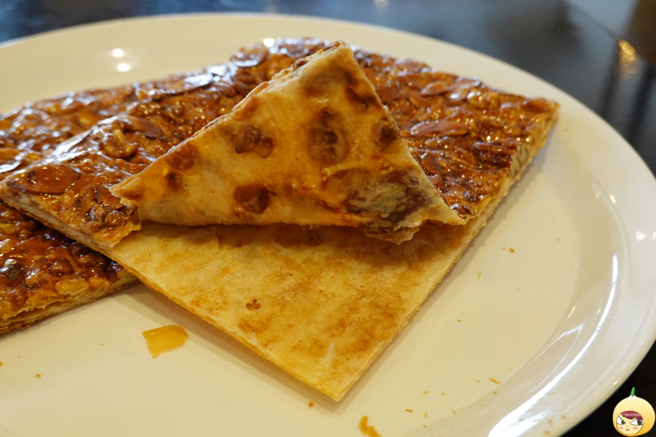 엘리게이터파이(6,000원)는 고를 생각이 전혀 없었다. 하지만 어떤 이가 "여기만 오면 언제나 엘리게이터파이만 먹어." 이 한마디에 충동 집게질을 했다. 파이치고는 무지 얇다. 2장으로 앞면은 피칸과 호두 등 견과류가 가득이고, 뒷면은 또띠아처럼 얇은 빵이 하나 더 있다.